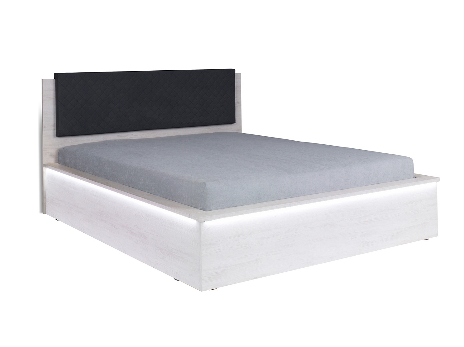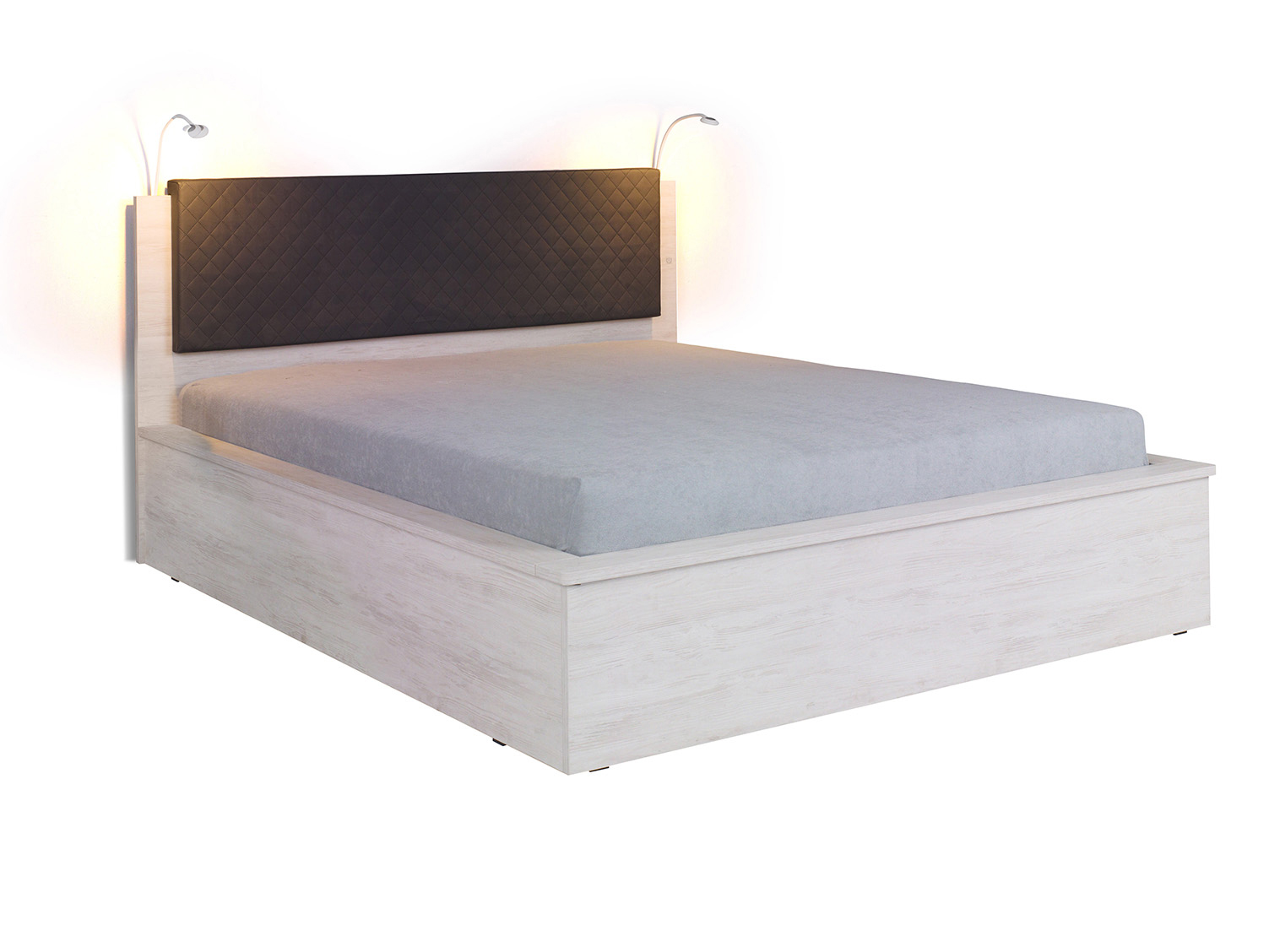 Bračni krevet 160 cm Desayuno P (hrast bijeli + ekokoža grafit) (s podnicom)