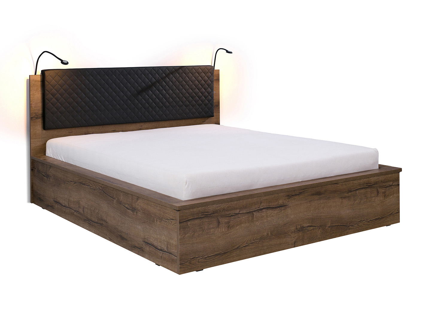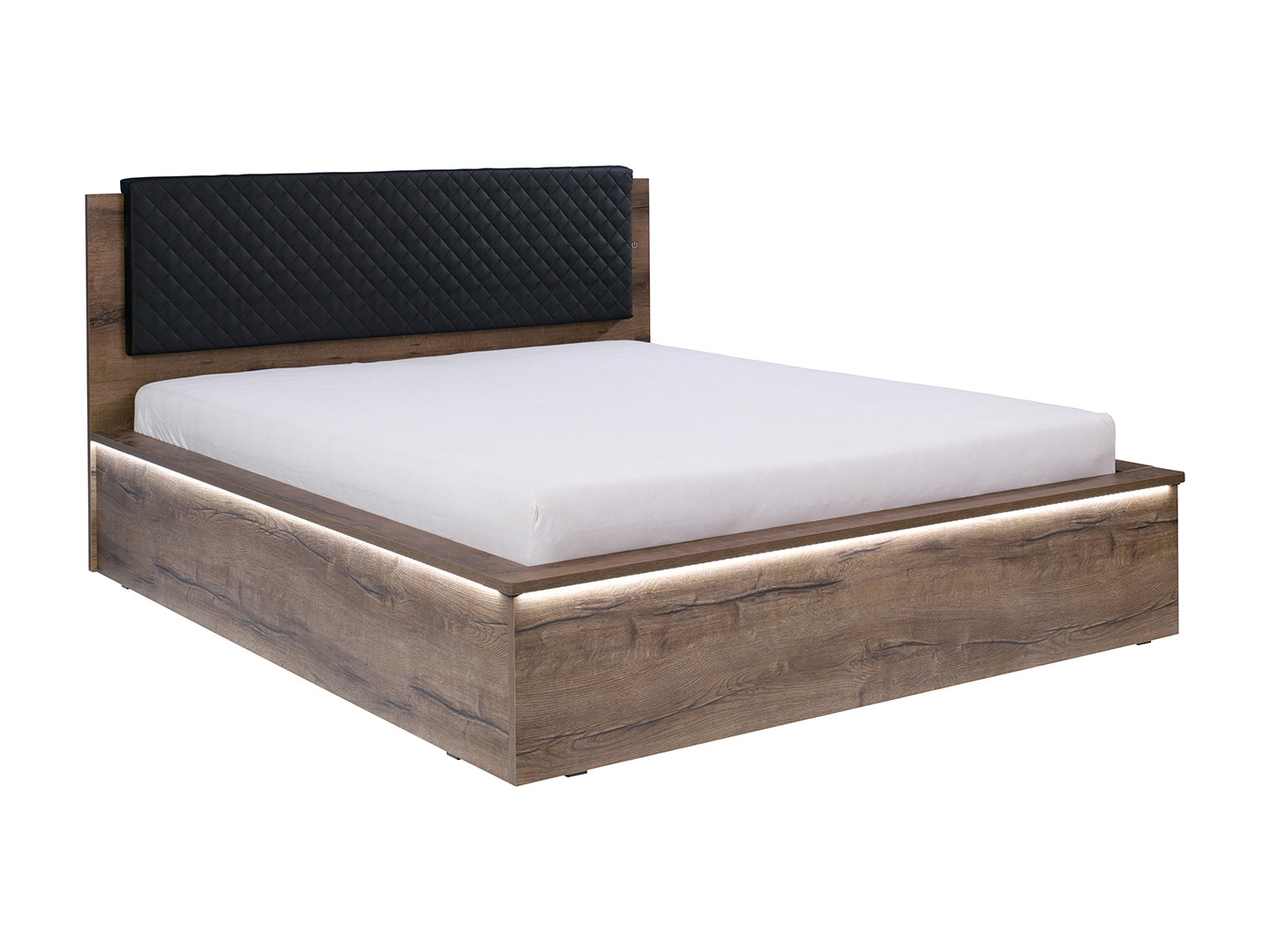 Bračni krevet 160 cm Desayuno P (hrast monastery + crna ekokoža) (s podnicom)