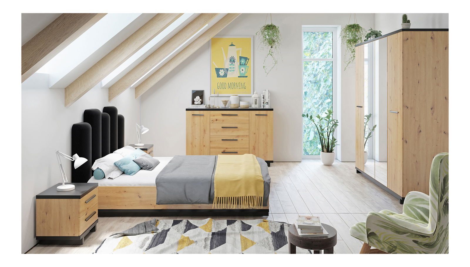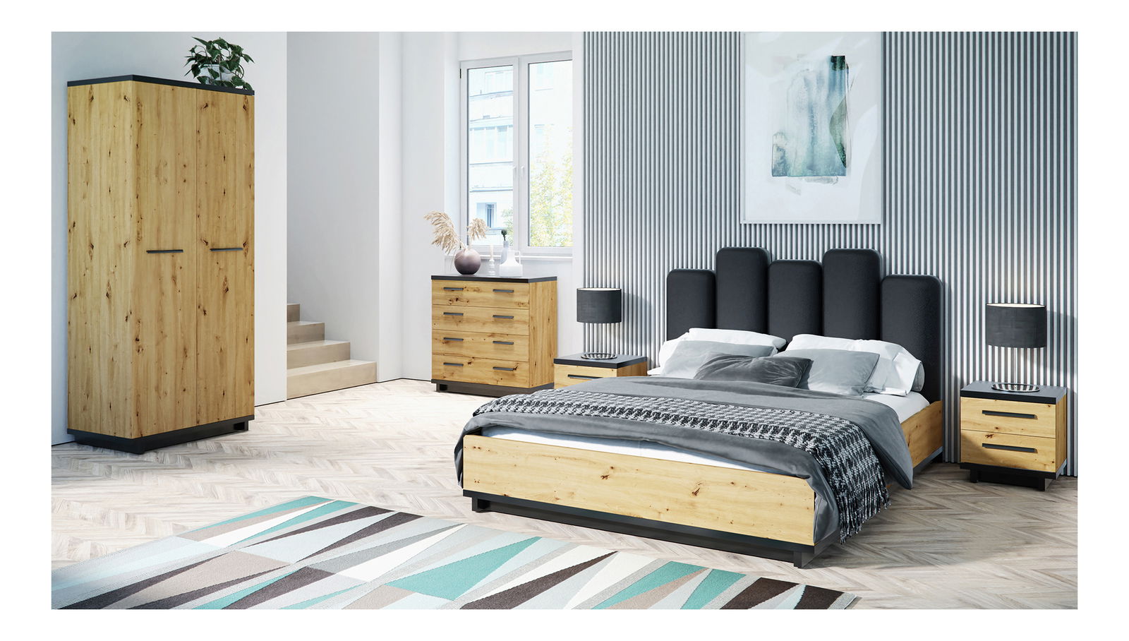 Bračni krevet 160 cm Indi P (hrast artisan + crna mat + hrast artisan) (s podnicom)