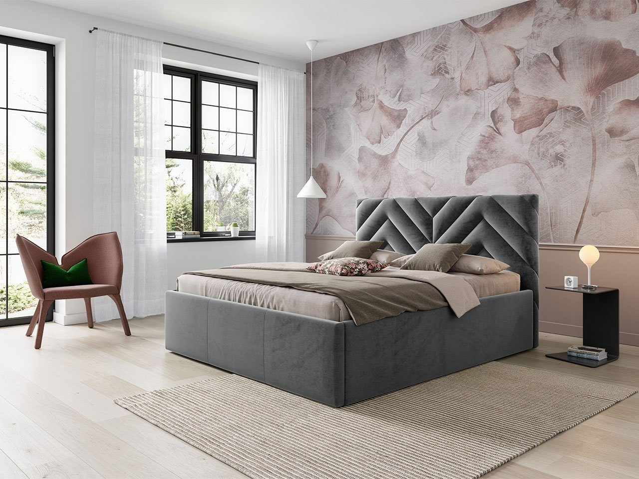 Bračni krevet 160 cm Mengalora (siva) (s podnicom) (s prostorom za odlaganje)