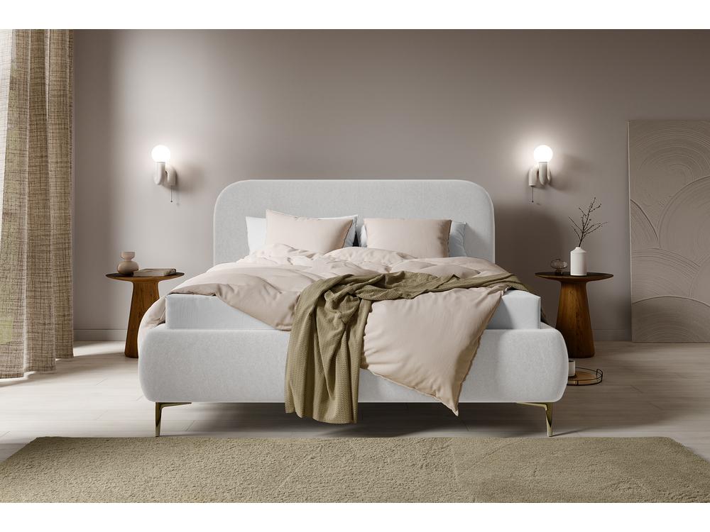 Bračni krevet 160 cm Mononoke 160 (s podnicom) (bijela + zlatna)