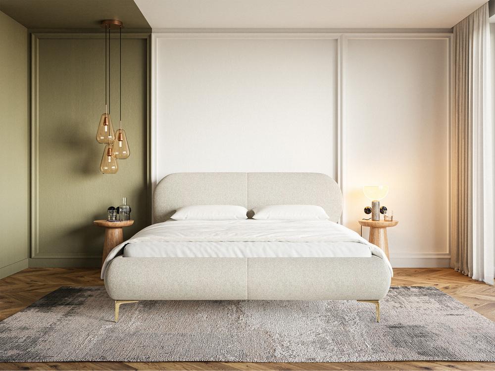 Bračni krevet 160 cm Octave 160 (s podnicom) (svijetlobež + zlatna)