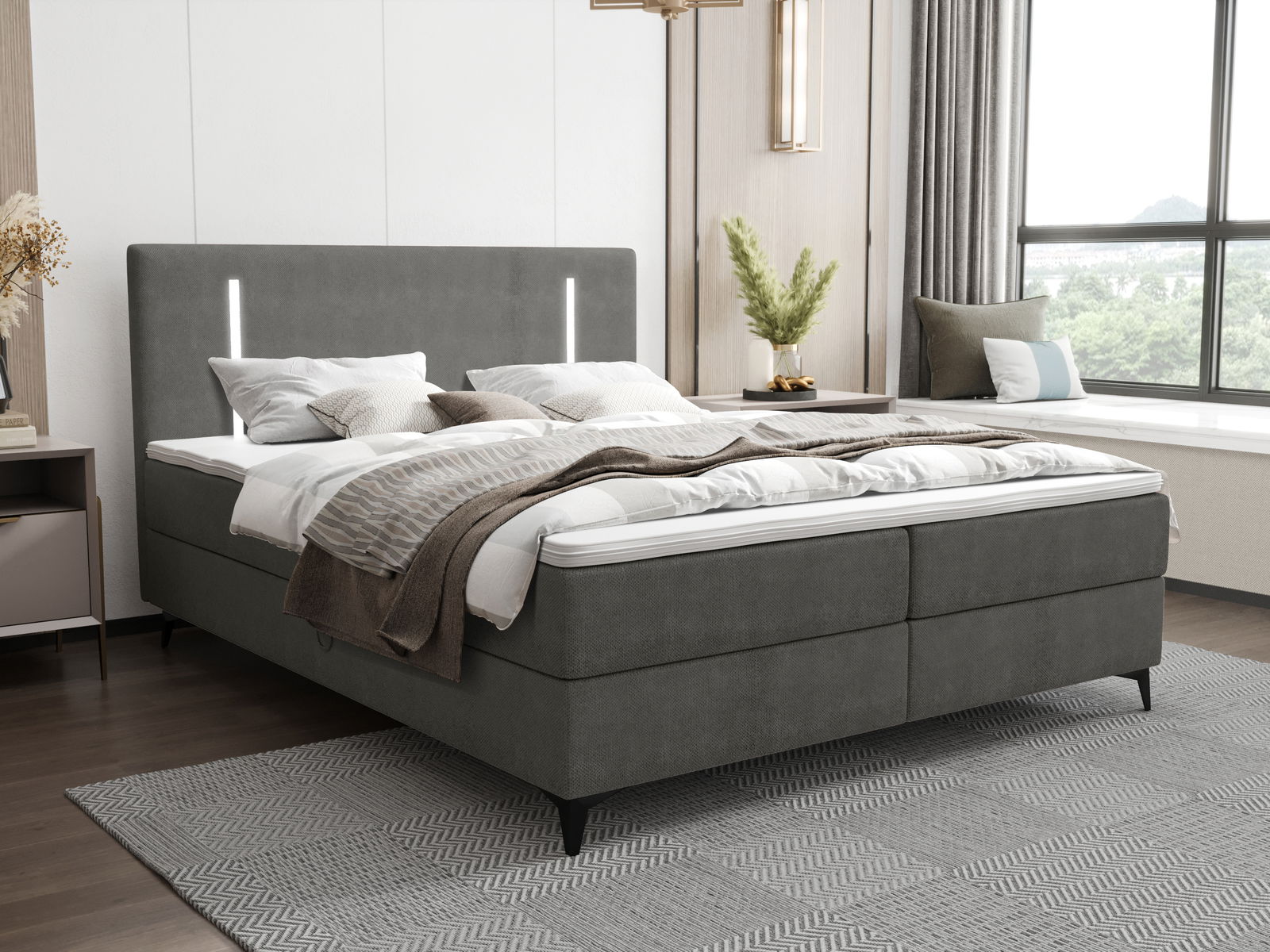 Bračni krevet 160 cm Ortega Bonell (tamnosiva) (s podnicom, s prostorom za odlaganje) (s LED rasvjetom)