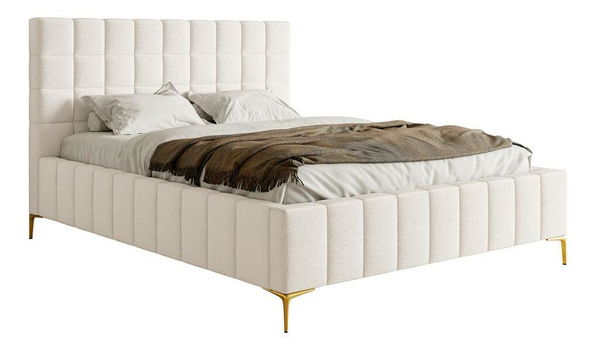 Bračni krevet 160 cm Sheldona 160 (s podnicom) (s prostorom za odlaganje) (krem + zlatna)