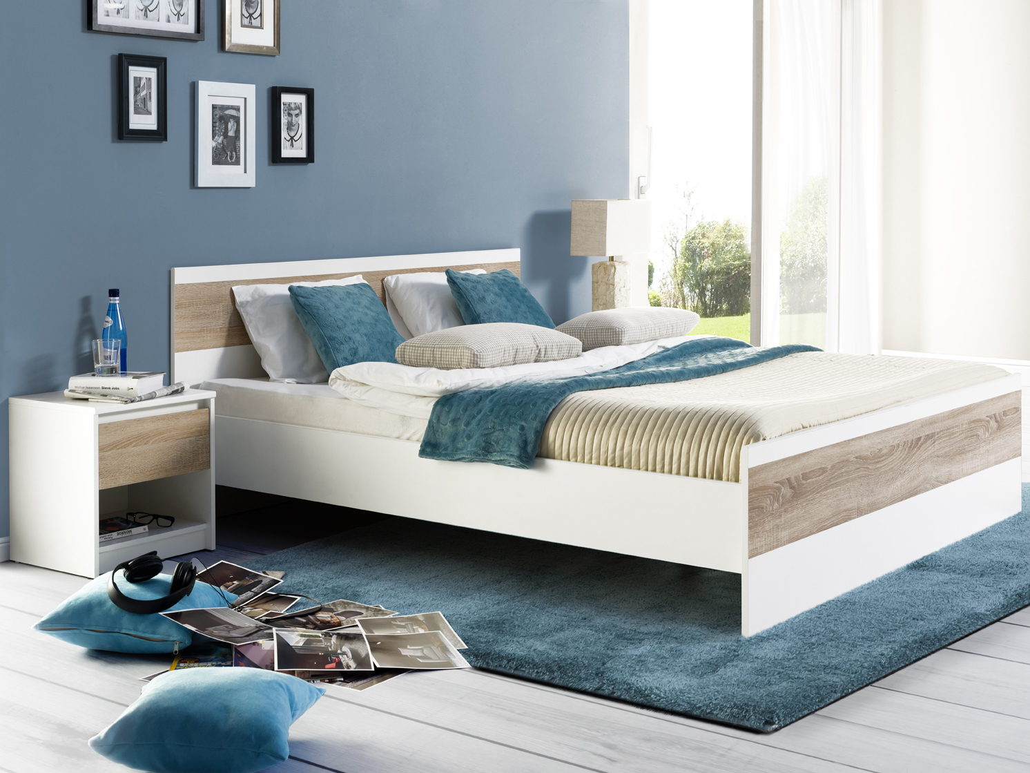 Bračni krevet 160 cm Wanta 03 (bijela + hrast sonoma)