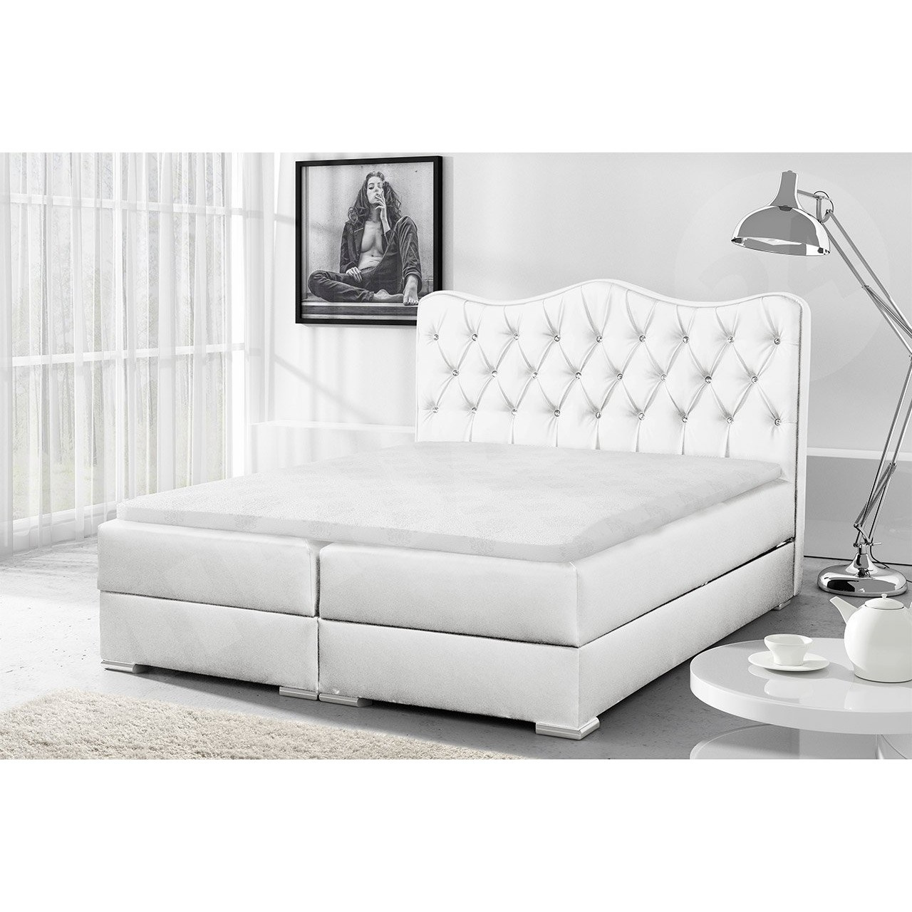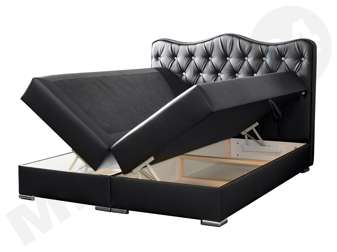krevet s dva spremnika za posteljinu s obje strane kreveta je standard, podizanje oba dijela iznad spremnika je opružno, zahvaljujući čemu je otvaranje vrlo jednostavno i lako.Sredina -madrac.