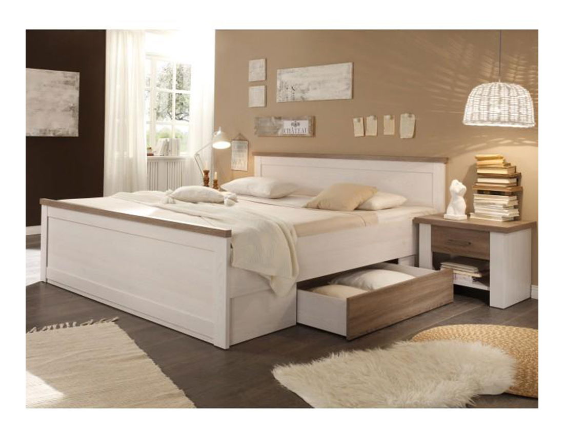 Bračni krevet 180 cm Dawa (prostor za odlaganje + 2 kom stolića) (bijela + hrast sonoma)