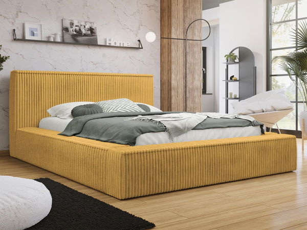 Bračni krevet 180 cm Gretty S (boja senfa) (s podnicom) (s prostorom za odlaganje)