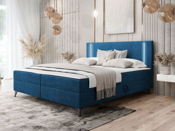 Bračni krevet 180 cm Hebara 2 (plava) (s podnicom i madracem) (s prostorom za odlaganje) (s LED rasvjetom)