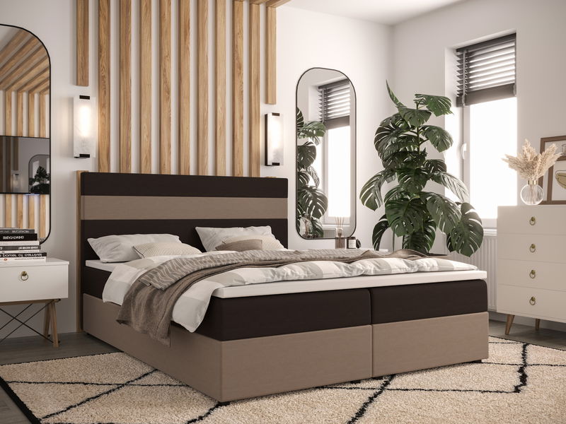 Bračni krevet 180 cm Locos (tamnosmeđa + svijetlosmeđa) (s madracem i prostorom za odlaganje)
