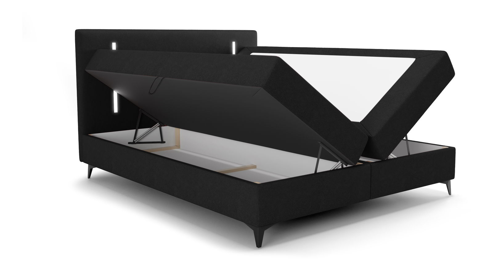 Bračni krevet 180 cm Ortega Comfort (crna) (s podnicom i madracem, s prostorom za odlaganje) (s LED rasvjetom)