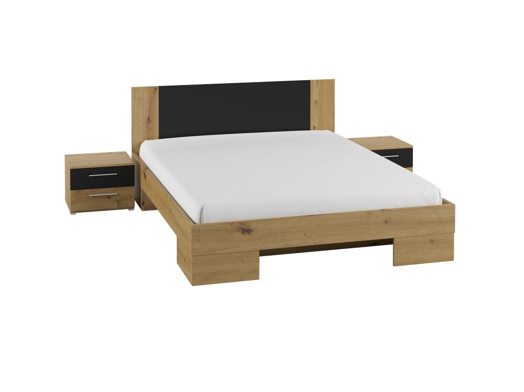 Bračni krevet 180 cm Verwood Typ 52 (s noćnim ormarićima) (hrast artisan + crni hrast)