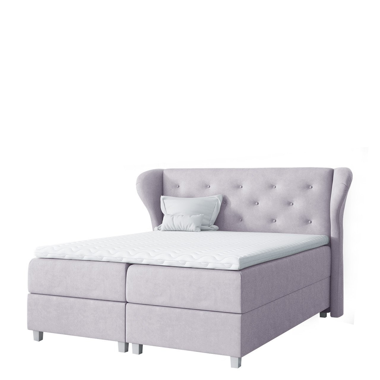 Kontinentalni krevet je idealan izbor za one koji traže udobnost i stil. Kontinentalni krevet Brid izrađen je u glamour stilu. Taj efekt stvaraju tapecirana uzglavlja s ukrasnim prošivima i zaobljenim bočnim osloncima. Dizajn namještaja zaslužuje posebnu pažnju. Kontinentalni krevet Brid sastoji se od 3 elementa. Prvi je donji box, u kojem se nalazi spremnik za posteljinu. Drugi element je džepićasti madrac, koji je odgovoran za pravilnu potporu kralježnice tijekom spavanja. Treći element utječe na relaksaciju tijela, a to je topper 2,5 cm izrađen od elastične pjene i prošivene navlake. Dostupne dimenzije: 120: duljina: 212 cm, širina: 144 cm, visina: 120 cm, površina za spavanje: 120 x 200 cm. 140: duljina: 212 cm, širina: 164 cm, visina: 120 cm, površina za spavanje: 140 x 200 cm. 160: duljina: 212 cm, širina: 184 cm, visina: 120 cm, površina za spavanje: 160 x 200 cm. 180: duljina: 212 cm, širina: 204 cm, visina: 120 cm, površina za spavanje: 180 x 200 cm. 200: duljina: 212 cm, širina: 224 cm, visina: 120 cm, površina za spavanje: 200 x 200 cm. Izvedba: krevet nije samostojeći. Stražnji dio presvučen je čvršćom vlaknastom tkaninom - fibertex. Izvedba kontinentalnog kreveta: donji dio - tijelo, tj. spremnici za posteljinu - izrađeni od laminirane ploče + drva. Krevet standardno ima dva spremnika za posteljinu s obje strane. Podizanje obje strane zahvaljujući oprugama omogućuje jednostavno rukovanje. Drvene noge obojene srebrnom bojom. Središnji dio - glavni madrac: opruge Pocket (madrac tipa Pocket ima 272 valjkaste opruge na 1 m2, što korisniku pruža dobru potporu tijela - kostur je dobro poduprt i prirodne krivulje tijela su očuvane). Visoko fleksibilna pjena T30. Gornji dio - Topper: visokoelastična pjena 3 cm (iznimna elastičnost, fleksibilnost i prozračnost). Prošivena navlaka - zatvarač u obliku C. Visina gornjeg dijela cca 5 cm. Mogućnost kupnje: Noćni stolić Umaru u boji kreveta. Dimenzije spremnika: visina: 33 cm, duljina: 197 cm, širina: 120/200 - 56,5 cm, 140/200 - 66,5 cm, 160/200 - 76,5 cm, 180/200 - 86,5 cm, 200/200 - 96,5 cm. Jamstvo: 24 mjeseca.