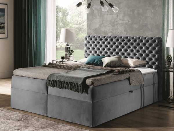 Kontinentalni krevet je idealan izbor za one koji traže udobnost i stil. Kontinentalni krevet Tigline sinonim je za udobnost, svakodnevnu praktičnost i sofisticirani stil. Tapeciranje, mekano i ugodno na dodir, izrađeno je od kvalitetnog baršuna. Prekriva i visoko uzglavlje kreveta. Karakterističan element modela Tigline je duboko prošivanje uzglavlja. Zahvaljujući nekoliko slojeva madraca, san dolazi brzo i osigurava regeneraciju tijela nakon napornog dana. Glavni madrac i srednji sloj kreveta imaju srednju tvrdoću. Gornji sloj izrađen je od najkvalitetnijih materijala, a ima posebne gumene trake koje sprječavaju pomicanje madraca. Kontinentalni krevet ima čak dva spremnika za posteljinu. Optimalna dubina znači da u njih možete pohraniti puno više od samih jastuka i popluna. Dostupne dimenzije: 120: dužina: 213 cm, širina: 126 cm, visina: 123 cm, površina za spavanje: 120 x 200 cm, dimenzije jednog spremnika (krevet ima dva): dužina: 198 cm, širina: 56 cm, visina: 32 cm. 140: dužina: 213 cm, širina: 146 cm, visina: 123 cm, površina za spavanje: 140 x 200 cm, dimenzije jednog spremnika (krevet ima dva): dužina: 198 cm, širina: 66 cm, visina: 32 cm. 160: dužina: 213 cm, širina: 166 cm, visina: 123 cm, površina za spavanje: 160 x 200 cm, dimenzije jednog spremnika (krevet ima dva): dužina: 198 cm, širina: 76 cm, visina: 32 cm. 180: dužina: 213 cm, širina: 186 cm, visina: 123 cm, površina za spavanje: 180 x 200 cm, dimenzije jednog spremnika (krevet ima dva): dužina: 198 cm, širina: 86 cm, visina: 32 cm. 200: dužina: 213 cm, širina: 206 cm, visina: 123 cm, površina za spavanje: 200 x 200 cm, dimenzije jednog spremnika (krevet ima dva): dužina: 198 cm, širina: 96 cm, visina: 32 cm. Izvedba: iverica 16 mm, krevet nije samostojeći u prostoru, naslon je tapeciran čvršom oblogom od fibretexa, ima dva spremnika – krevet standardno s dva spremnika s obje strane kreveta, podizanje oba dijela zahvaljujući oprugama, što čini rukovanje vrlo jednostavnim i laganim, jezgra: džepičaste opruge (Pocket madrac sadrži 272 valjkaste opruge na 1 m2, što omogućuje korisniku da uživa u dobroj potpori tijela – sustav kostura je dobro poduprt i prirodne krivulje tijela su očuvane), visokoelastična pjena T30 (odlikuje se iznimnom fleksibilnošću i prozračnošću), glavni madrac je srednje tvrd, tvrdoća glavnog madraca (srednji sloj kreveta): H3, noge: plastični klizači, u gornjem dijelu – gornji madrac (Mandula topper): srednje tvrd, debljina 2,5 cm, prošivena navlaka, topper izrađen od najkvalitetnijih hipoalergijskih materijala: antibakterijski i antifungalni poliesterski dres 200 g/m2, 20 mm PU pjena: odlikuje se visokom gustoćom, odgovarajućom tvrdoćom i elastičnošću, niskom sklonošću deformacijama, visokom udobnošću korištenja, netkana tkanina od visoko vlaknastog poliesterskog vlakna 100 g/m2, runo 35 g/m2 izrađeno od visokokvalitetne netkane tkanine, poliestersko mikrovlakno 82 g/m2: prozračno, visoka apsorpcija vlage, antialergijsko, barijera protiv prašine i grinja, topper ima 4 izdržljive gumene trake koje sprječavaju pomicanje madraca, ukras: obrubljen trakom po rubu, obostran – obje strane su korisna površina, madrac se preporučuje okretati svaka 2-3 mjeseca, može se prati na 30 °C. Jamstvo: 24 mjeseca.