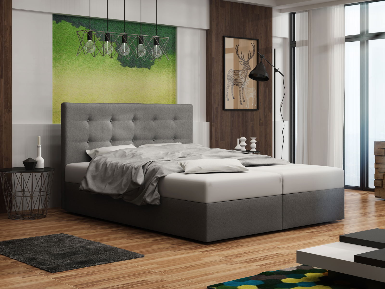 Bračni krevet Boxspring 140 cm Duel 1 (siva) (s madracem i prostorom za odlaganje)