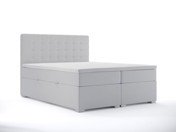 Bračni krevet Boxspring 160 cm Clady (bijela ekokoža) (s prostorom za odlaganje)