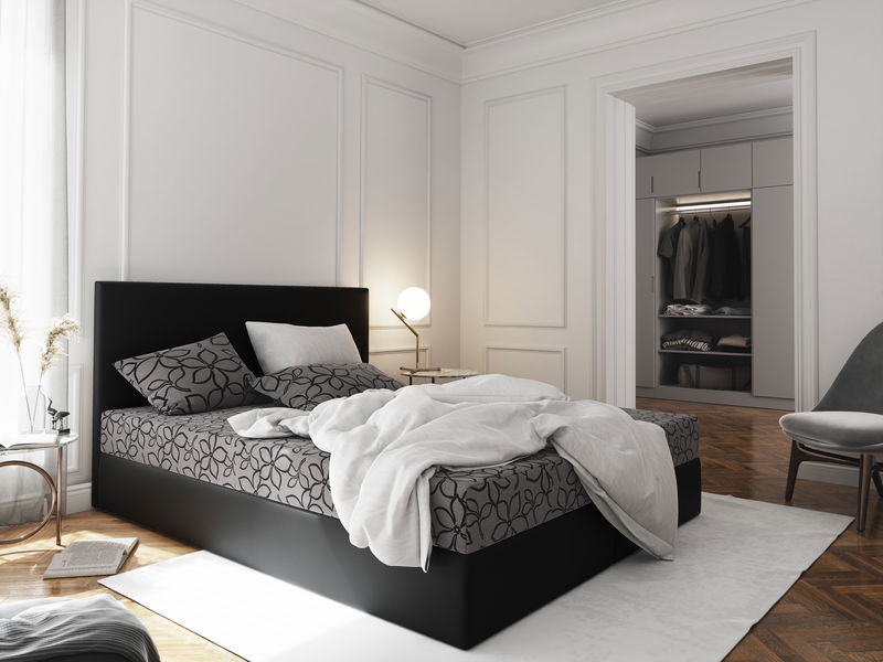 Bračni krevet Boxspring 160 cm Lilac (uzorak + crna) (s madracem i prostorom za odlaganje)