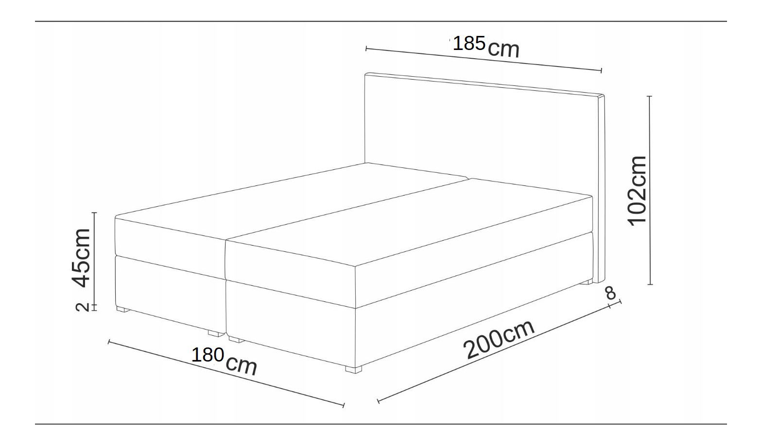 Bračni krevet Boxspring 180 cm Karen (crna) (s madracem i prostorom za odlaganje)