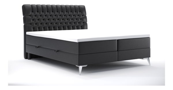 Bračni krevet Boxspring 180 cm Molera (crna ekokoža) (s prostorom za odlaganje)