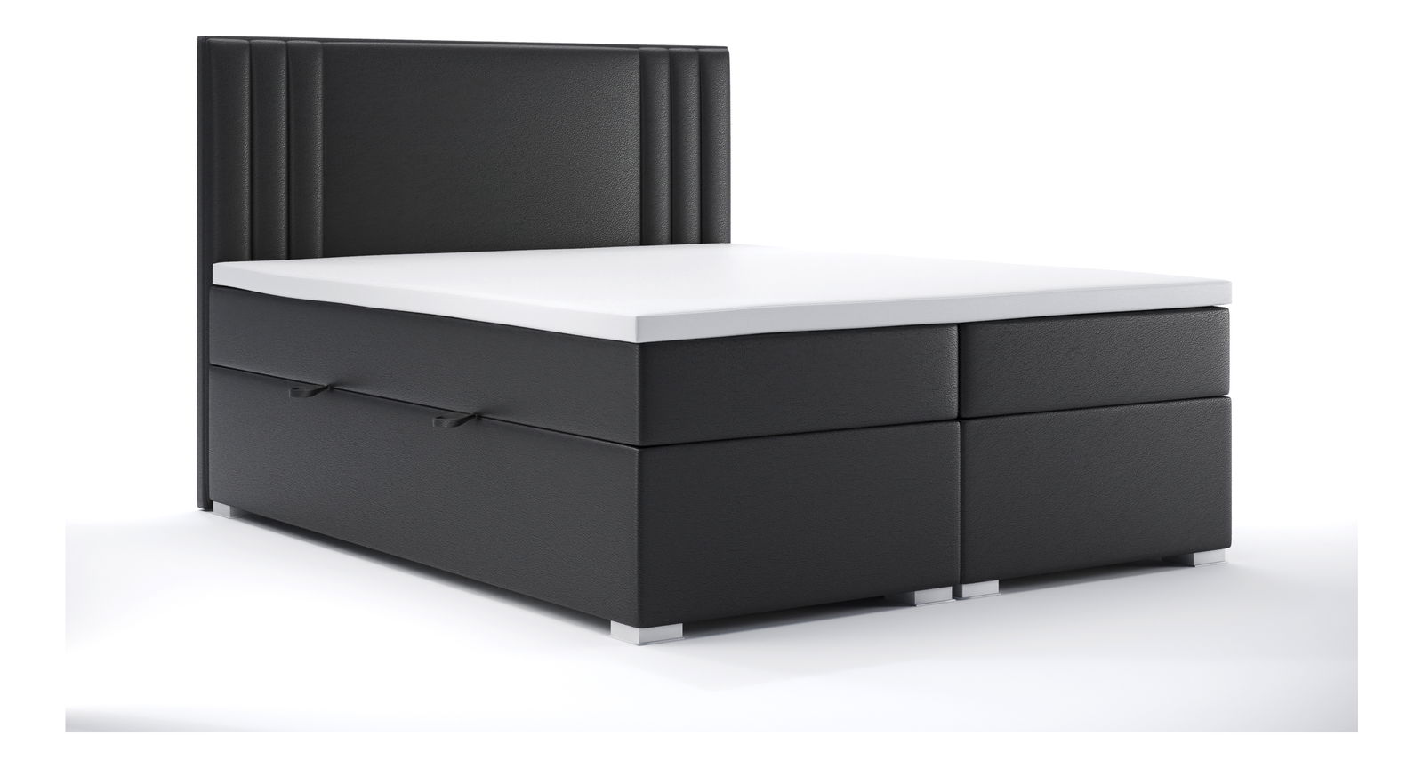 Bračni krevet Boxspring 180 cm Morcano (crna ekokoža) (s prostorom za odlaganje)