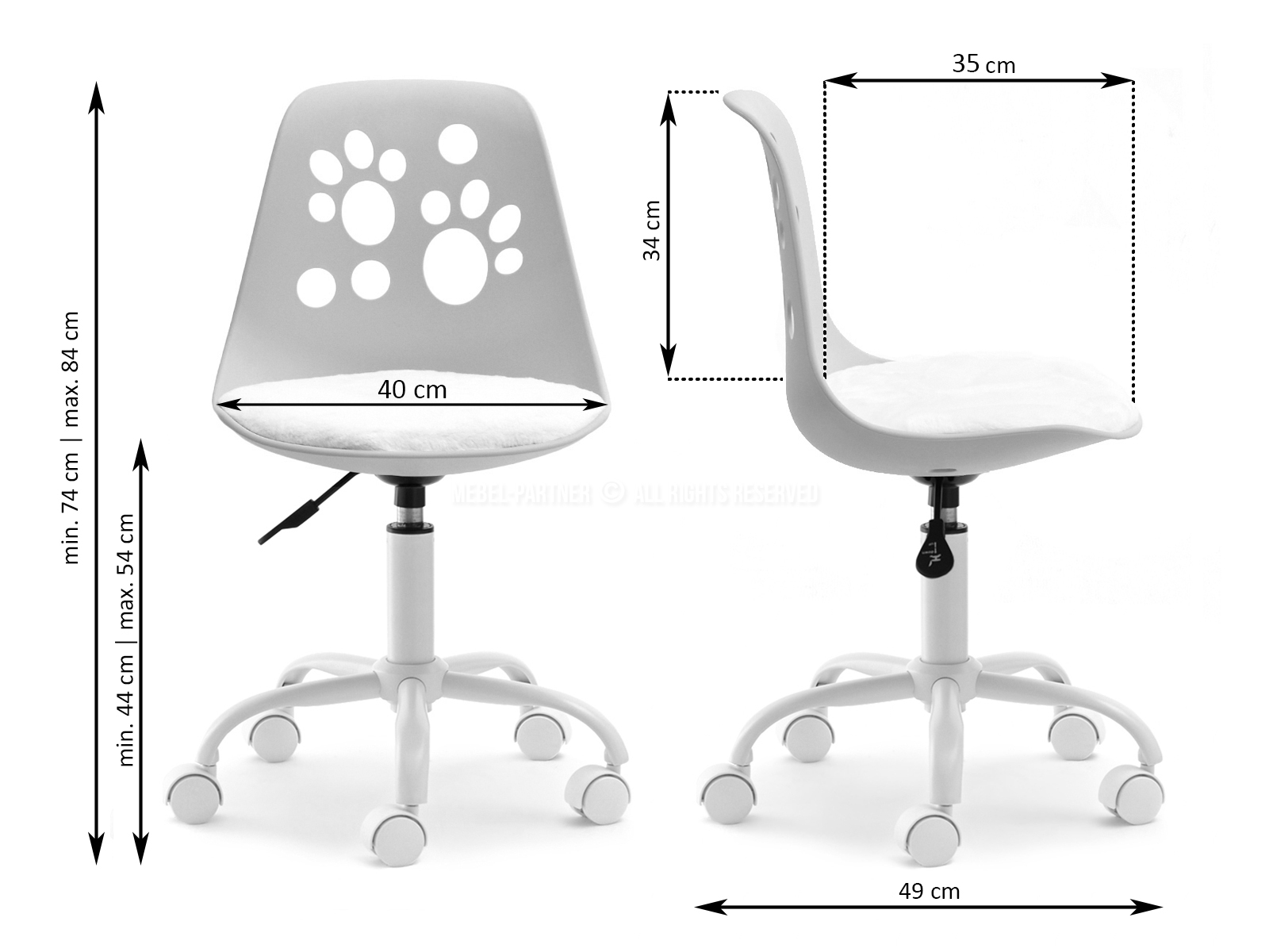 okretno sjedište, središnja baza s kotačima, bez naslona za ruke, podesiva visina, bez naslona za glavu