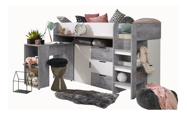Dječji kombinirani krevet 90 cm Kesa 1 (beton + bijela mat)