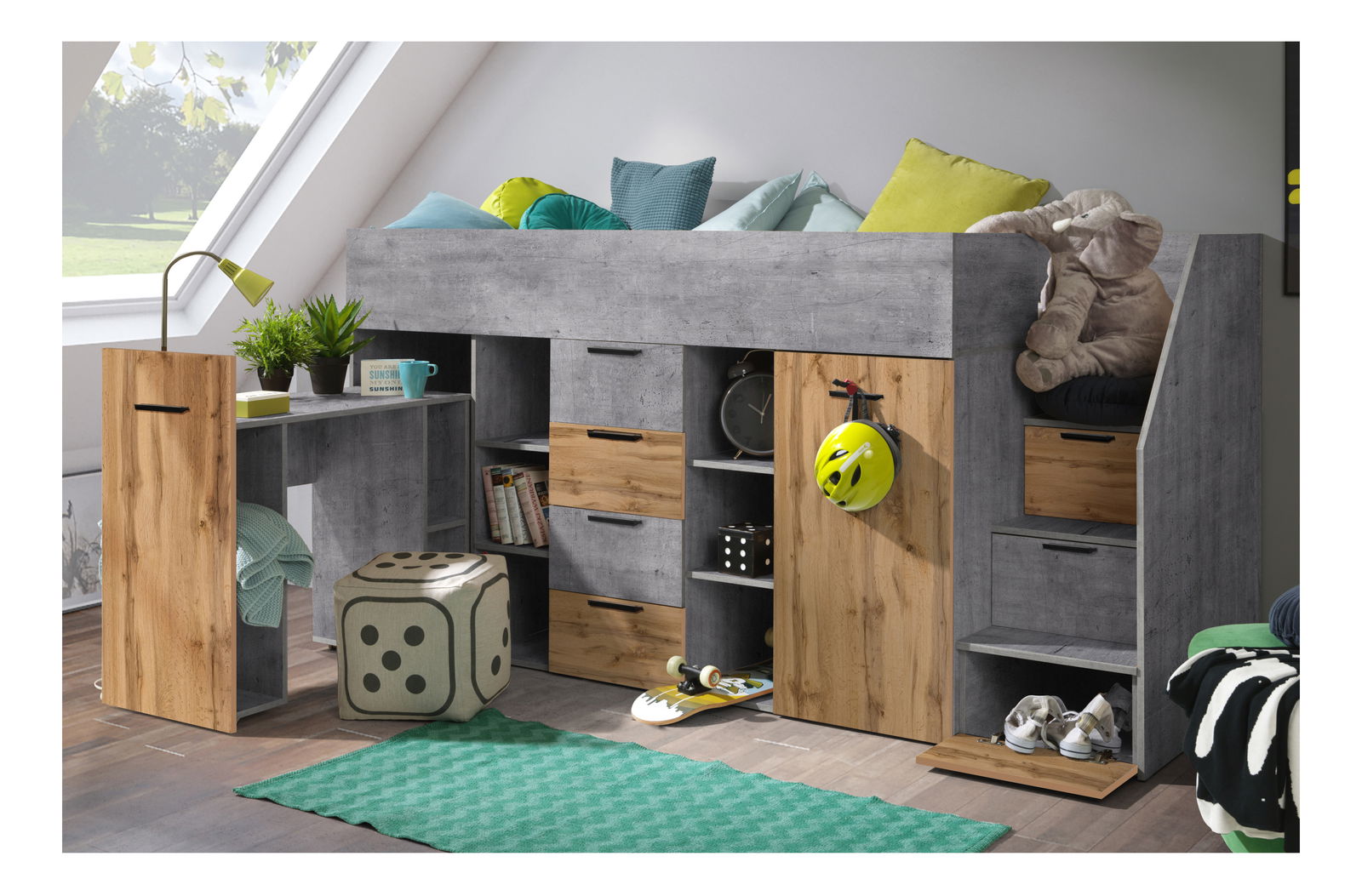 Dječji kombinirani krevet 90 cm Kesa 3 (beton + hrast wotan) (D)