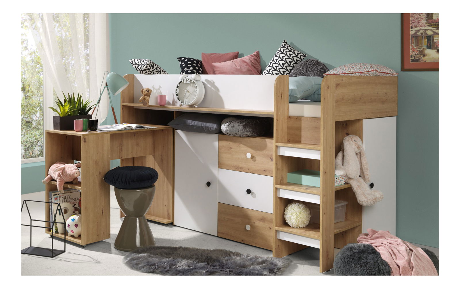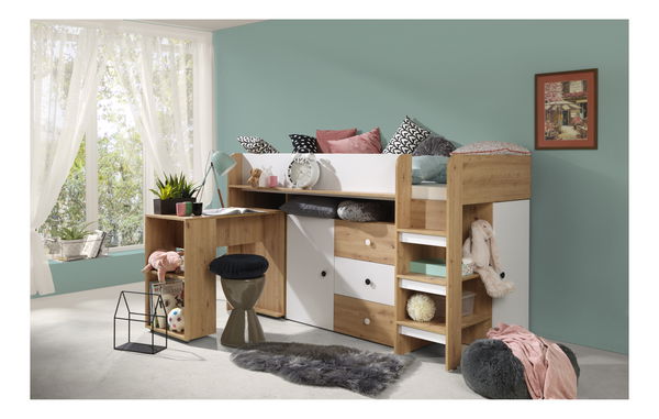 Dječji kombinirani krevet 90 cm Sami 1 (hrast artisan + bijela mat + crne ručke)