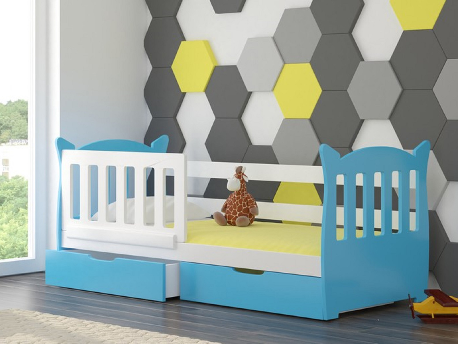Dječji krevet 160x75 cm Lenka (s podnicom i madracem) (bijela + plava)