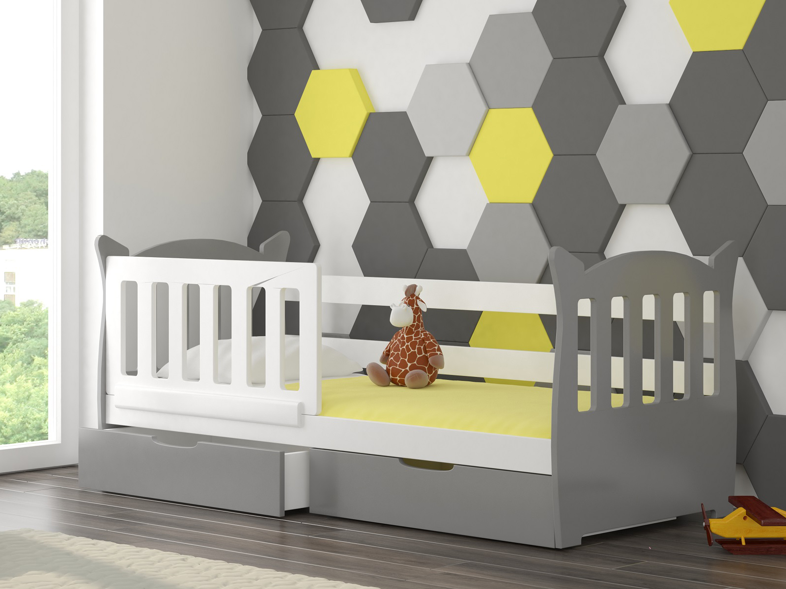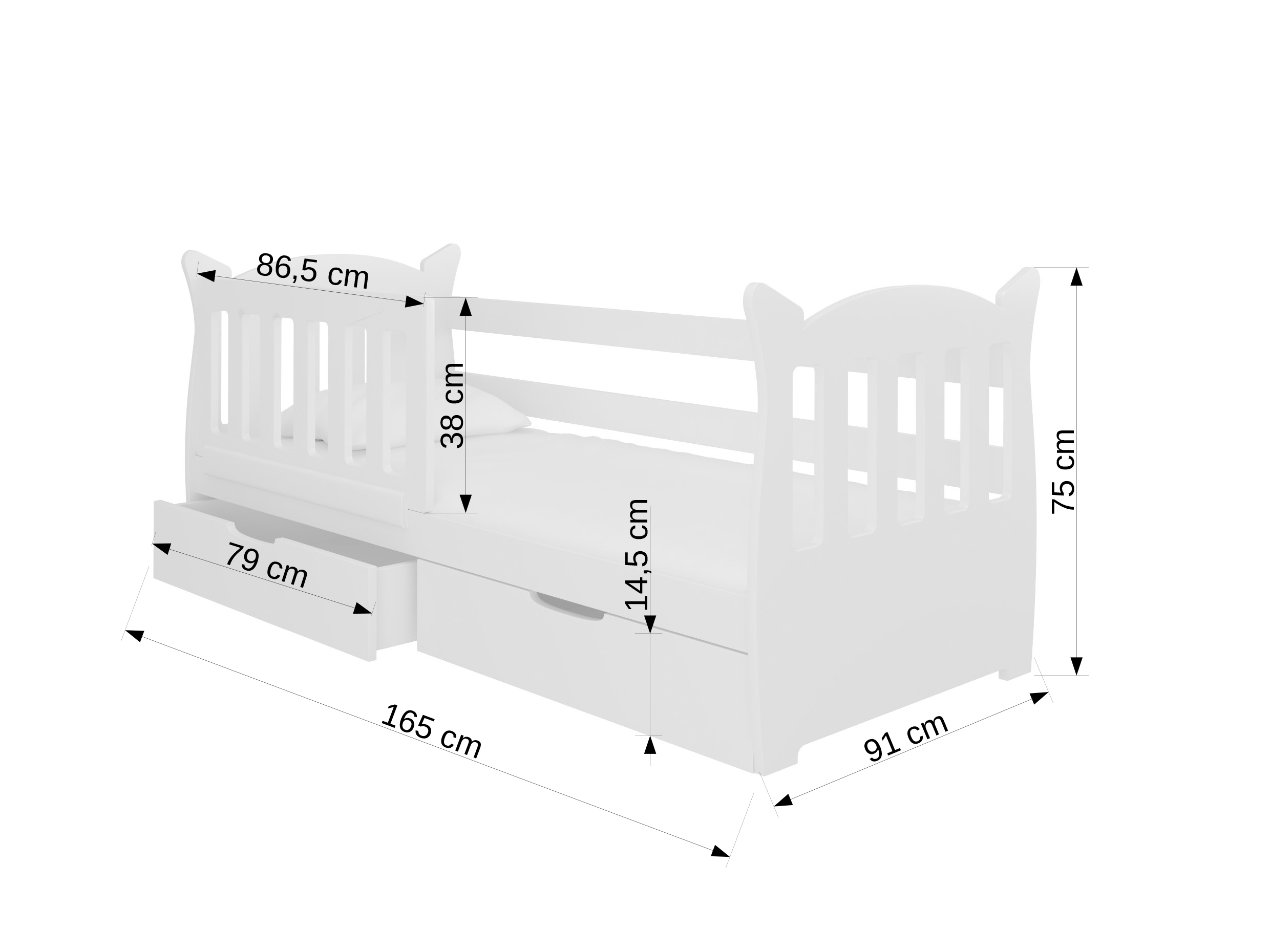 Dječji krevet 160x75 cm Lenka (s podnicom i madracem) (bijela + siva)