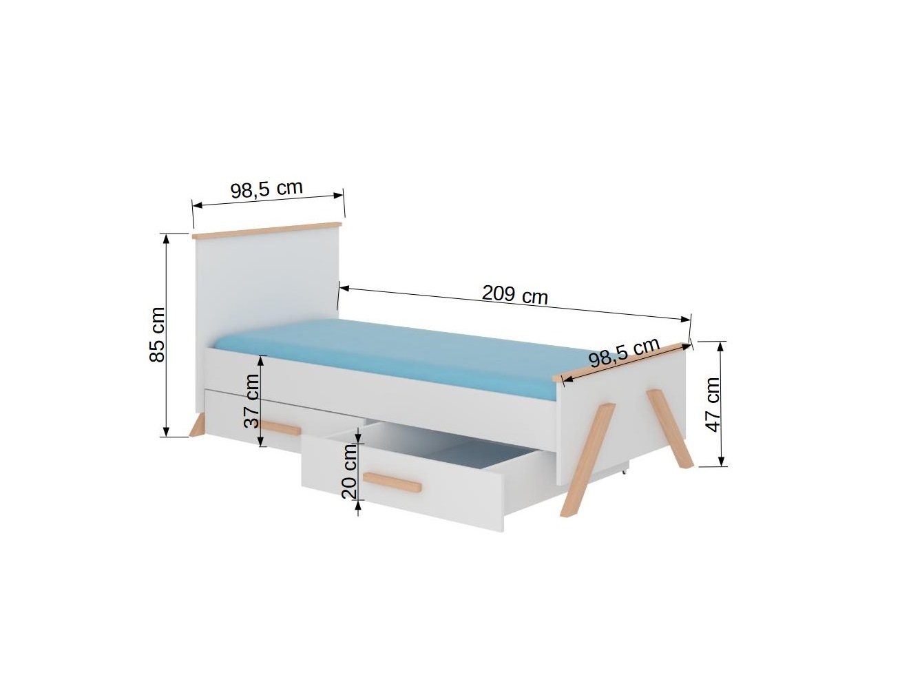 Dječji krevet 200x90 cm Karolina (s podnicom) (prirodna bukva + bijela)