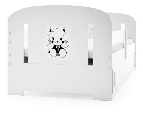 Dječji krevet 80 cm Fimmo (bijela + mačka) (s podnicom, madracem i prostorom za odlaganje)