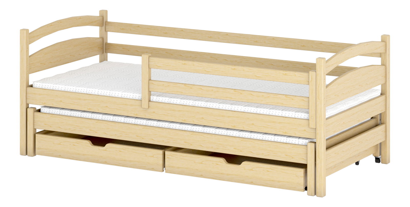 Krevet na razvlačenje Tiana ima pregradu i donji izvlačni ležaj. Donji ležaj je za 10 cm niži od gornjeg. Gumeni kotačići neće ogrebati drvene podove.