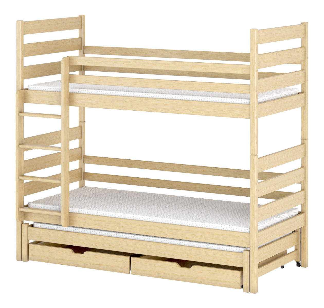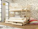 Krevet na kat Tori je odličan izbor ako imate više djece. Krevet ima dva standardna kreveta i pomoćni ležaj u donjem dijelu. Izrađen je od ploča borovine koje su premazane certificiranim lakovima. Gornji i srednji ležaj imaju zaštitne pregrade koje sprječavaju pad. U donjem dijelu kreveta se nalaze dvije ladice koje služe kao prostor za odlaganje.