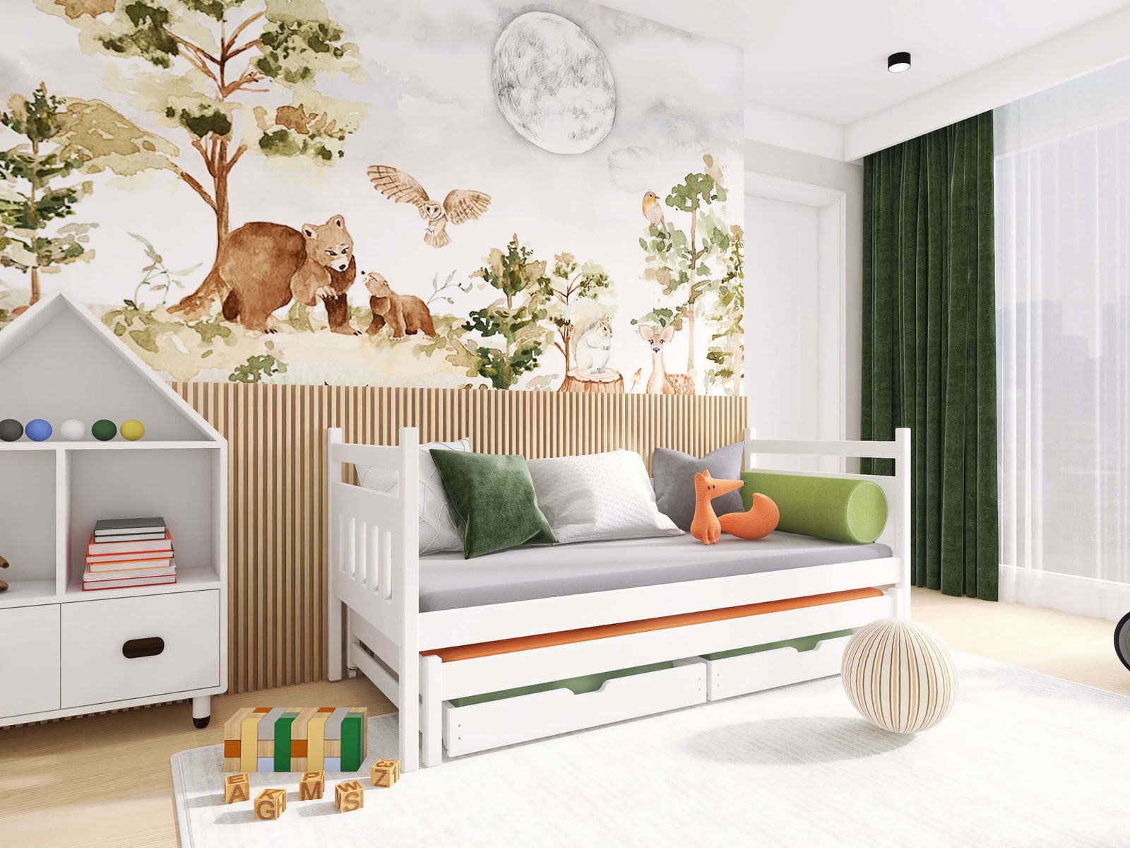 Krevet Danny na razvlačenje preporučuje se za manje prostore. S tri strane je osiguran pregradama. Donji ležaj je za 10 cm niži od gornjeg ležaja. Moguće ga je jednostavno uvući i izvući, što omogućuje uštedu prostora. Krevet ima dvije ladice za odlaganje. Gumeni kotačići neće oštetiti podove.