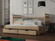 Krevet Danny na razvlačenje preporučuje se za manje prostore. S tri strane je osiguran pregradama. Donji ležaj je za 10 cm niži od gornjeg ležaja. Moguće ga je jednostavno uvući i izvući, što omogućuje uštedu prostora. Krevet ima dvije ladice za odlaganje. Gumeni kotačići neće oštetiti podove.