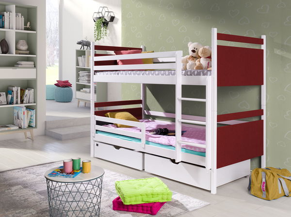 Krevet na kat Talia štedi prostor. Gornji i donji ležaj imaju zaštitne pregrade. Ladica za odlaganje posteljine ima gumene kotačiće koji neće ogrebati drvene podove.