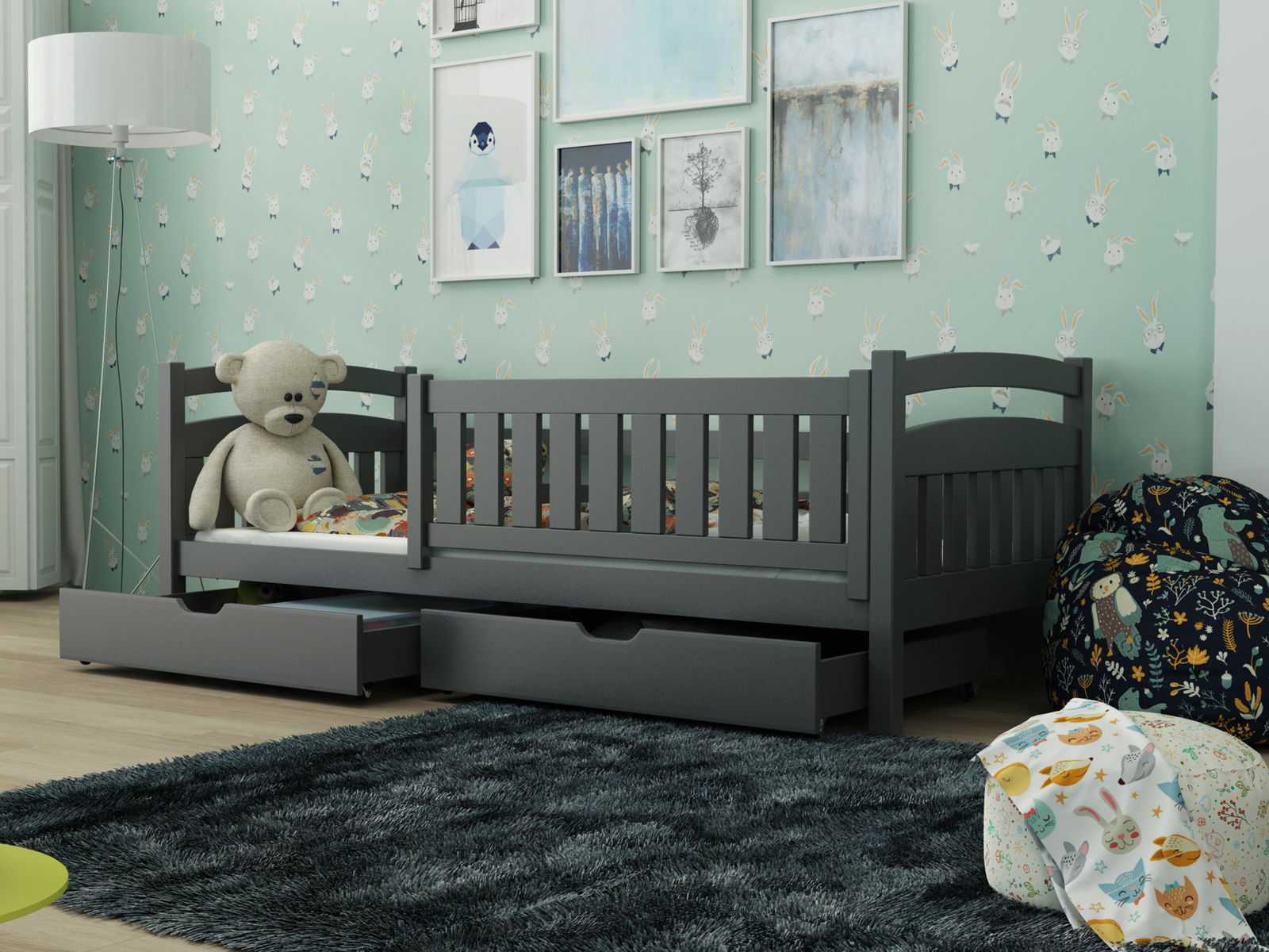 Dječji krevet 90 x 200 cm Tarra (s podnicom i prostorom za odlaganje) (grafit)