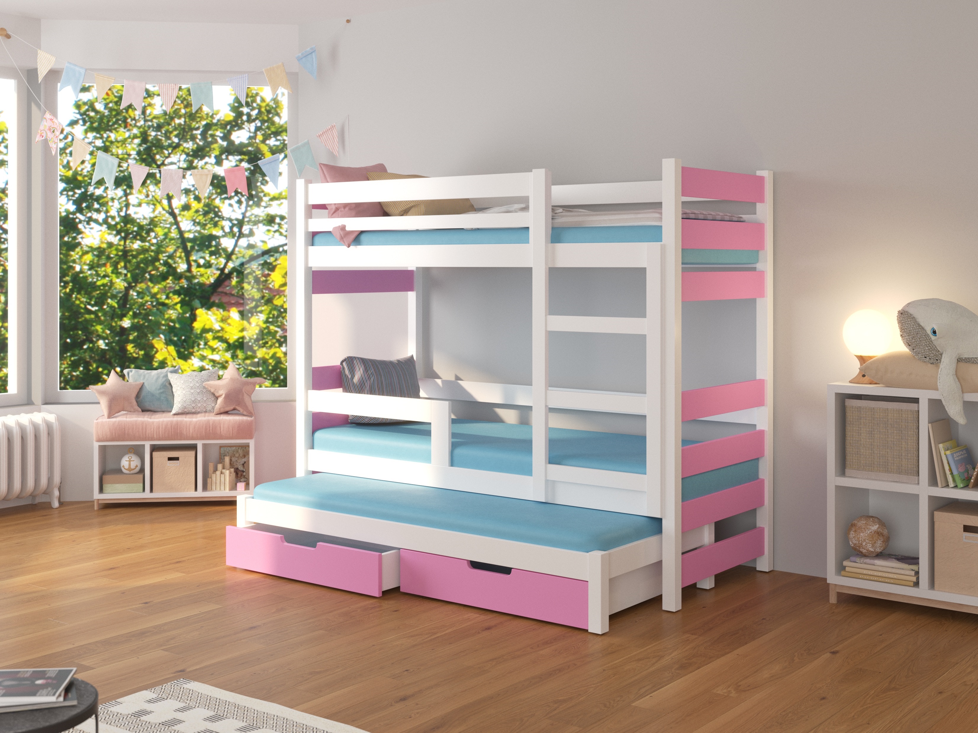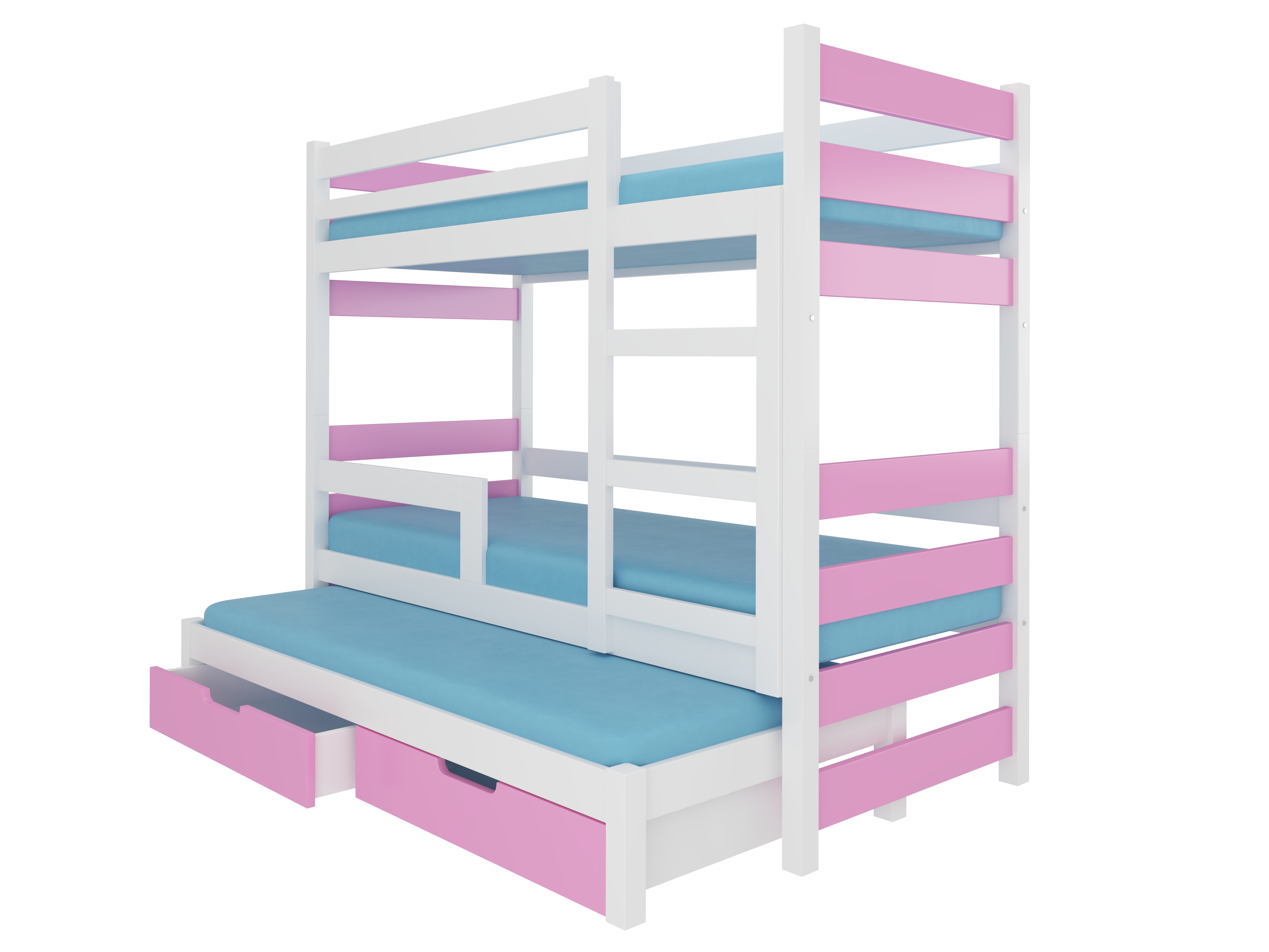Dječji krevet na kat 180x75 cm Karin (s podnicom i madracem) (bijela + ružičasta)