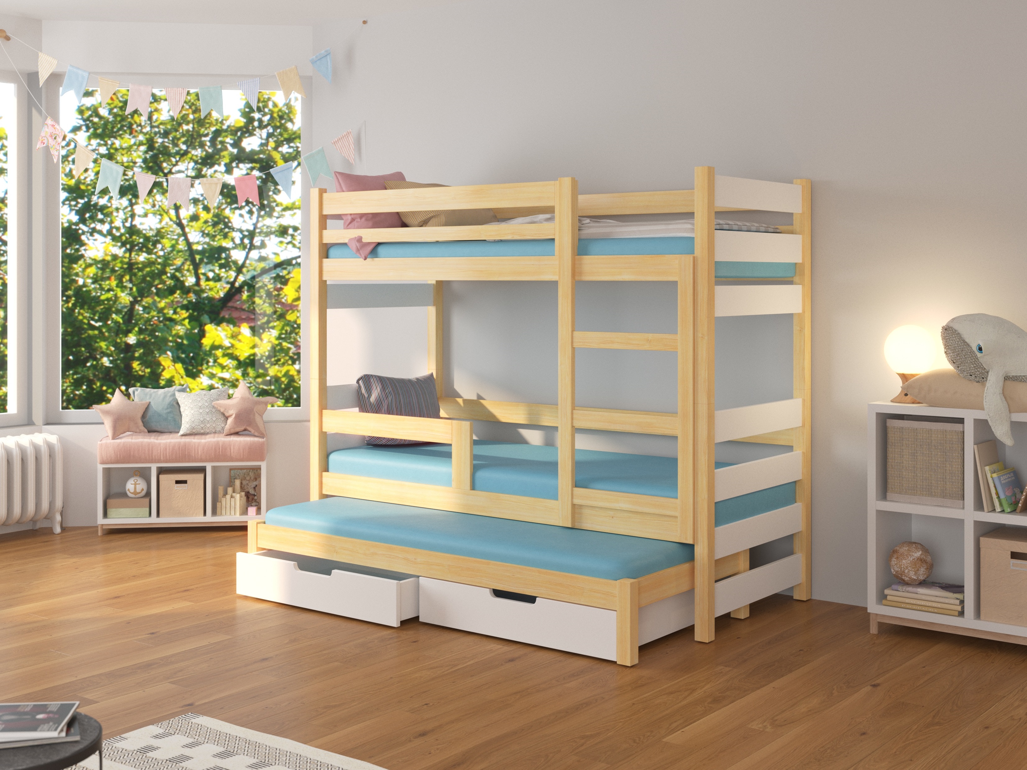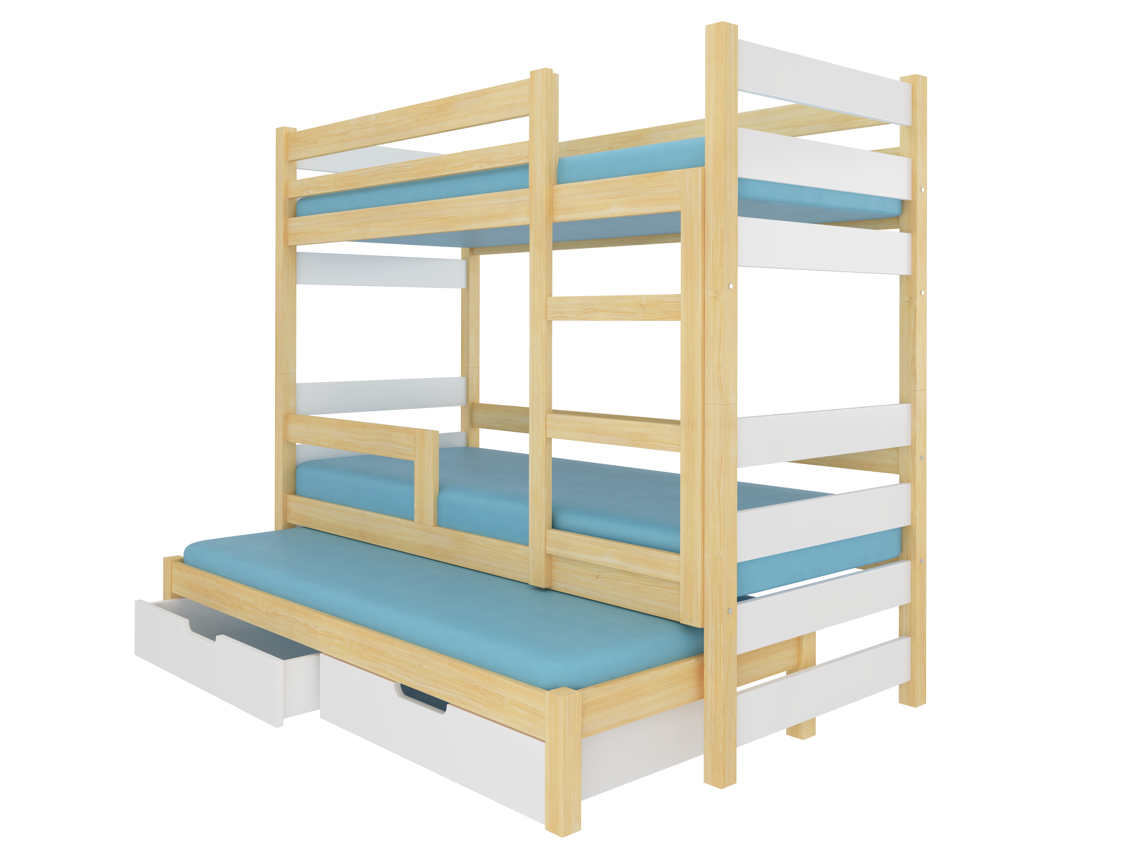 gornji ležajevi: 180 x 75 cm, donji ležaj na razvlačenje: 172 x 75 cm