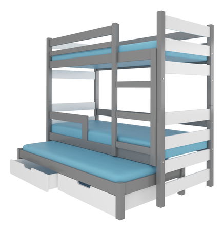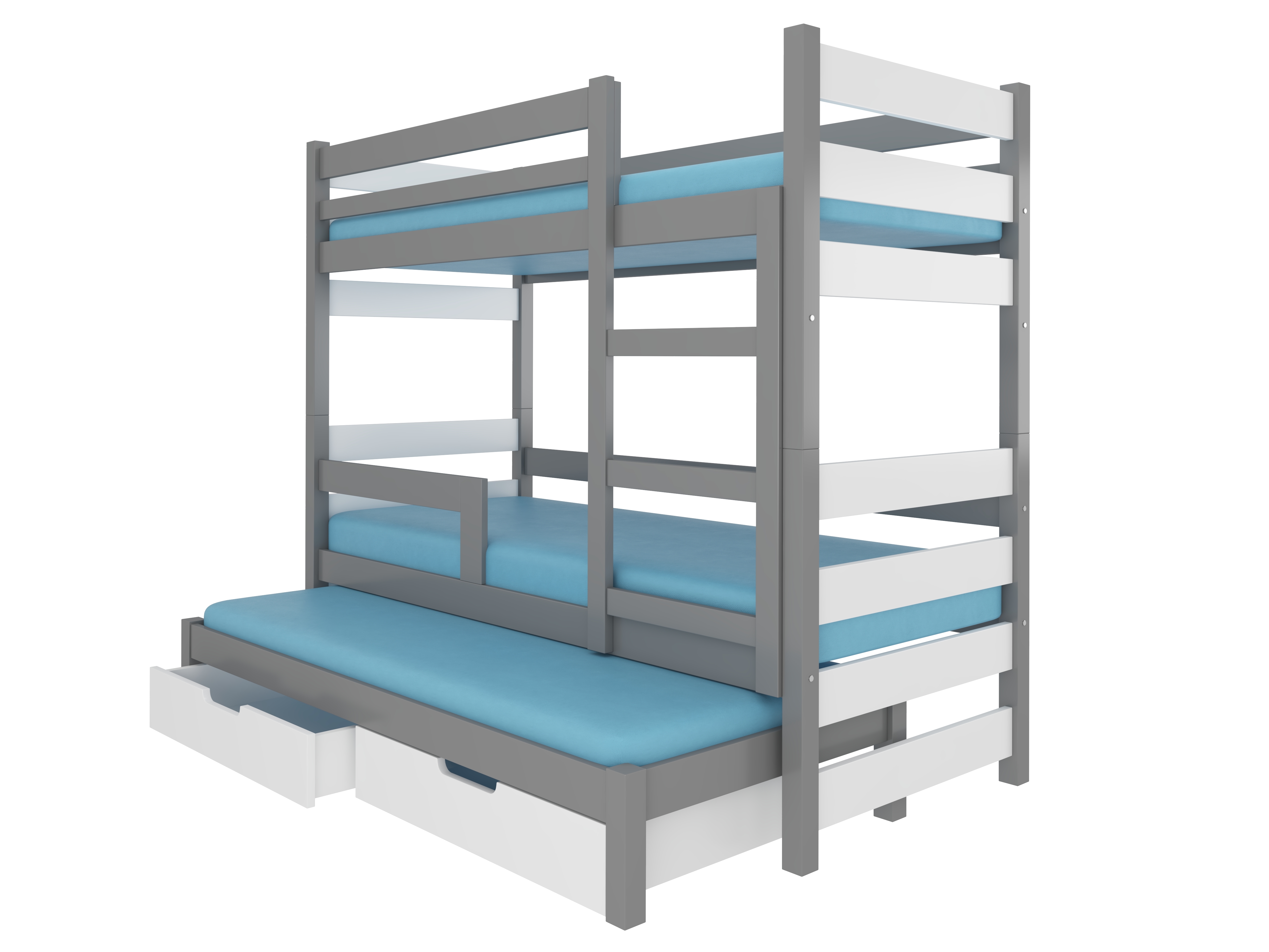 gornji ležajevi: 180 x 75 cm, donji ležaj na razvlačenje: 172 x 75 cm