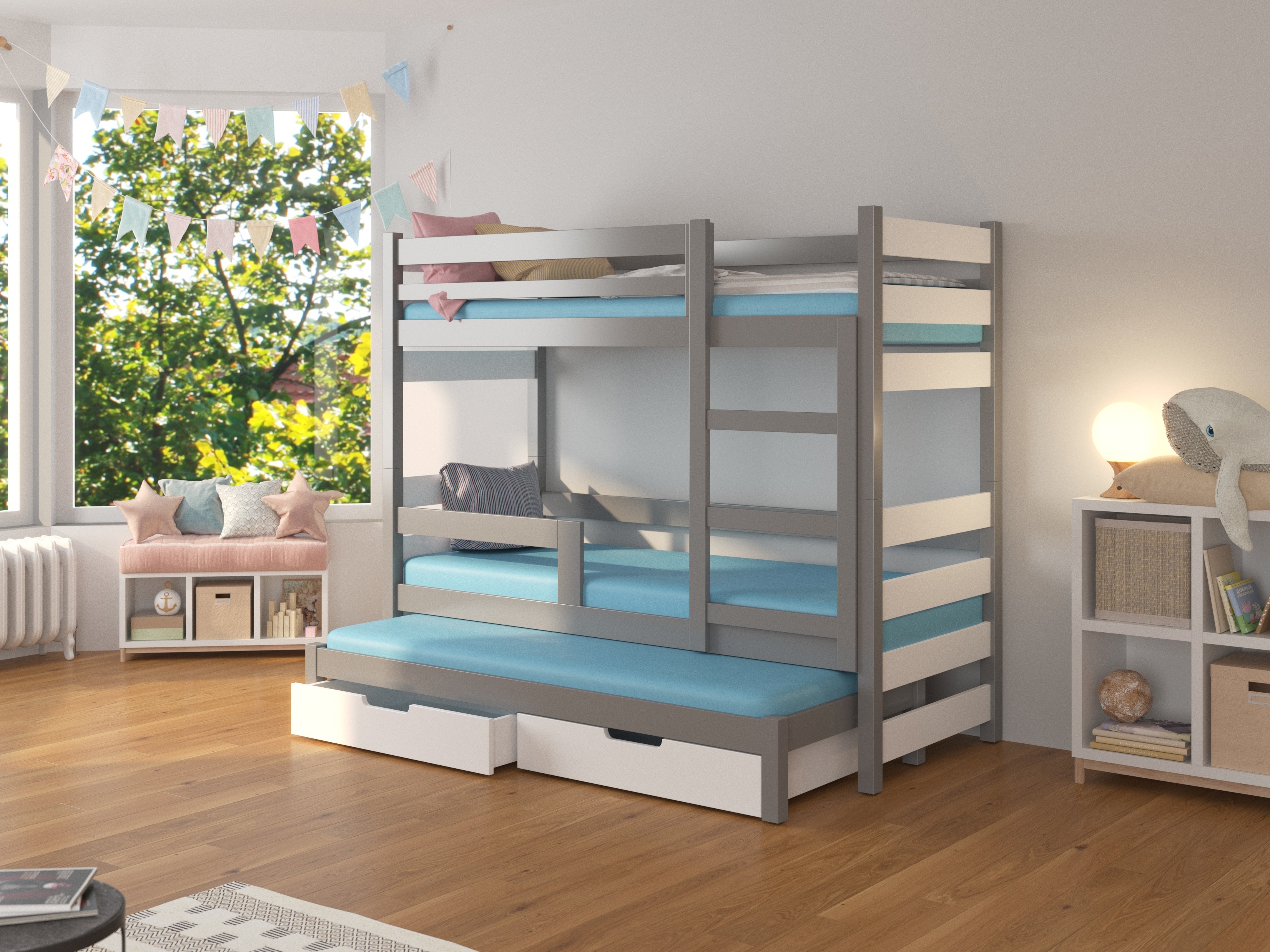 Dječji krevet na kat 180x75 cm Karin (s podnicom i madracem) (siva + bijela)