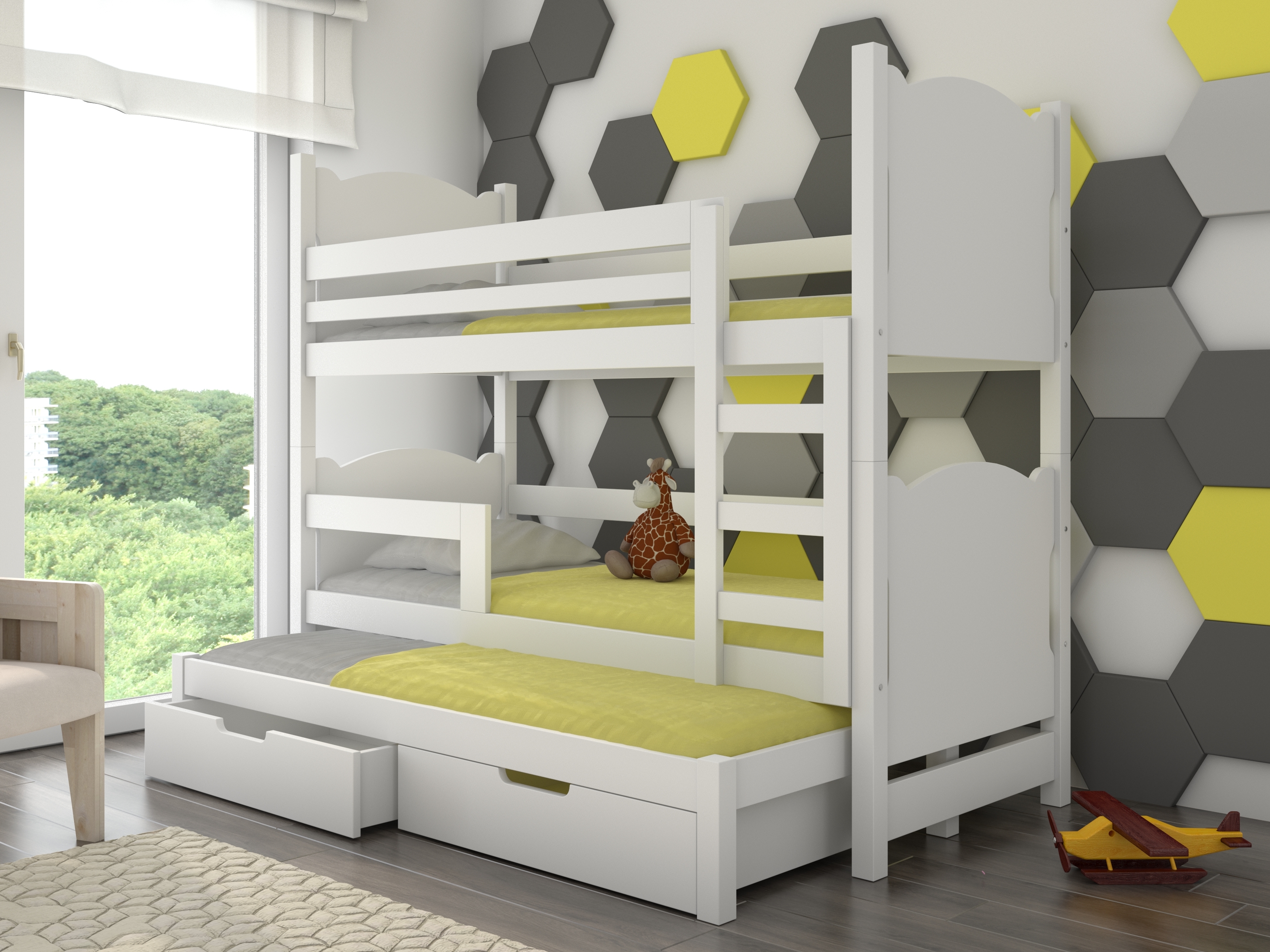 Dječji krevet na kat 180x75 cm Lukrécia (s podnicom i madracem) (bijela)
