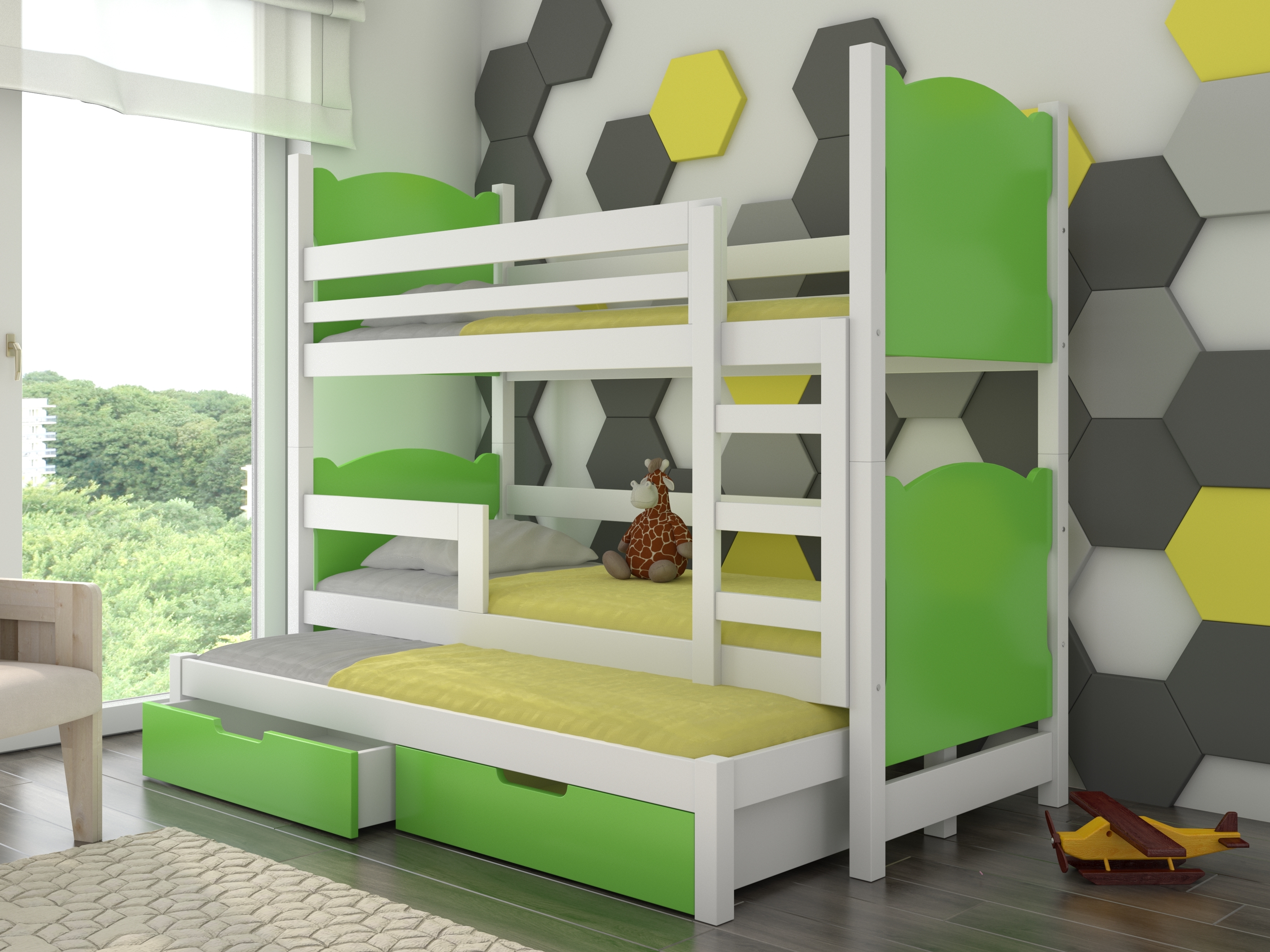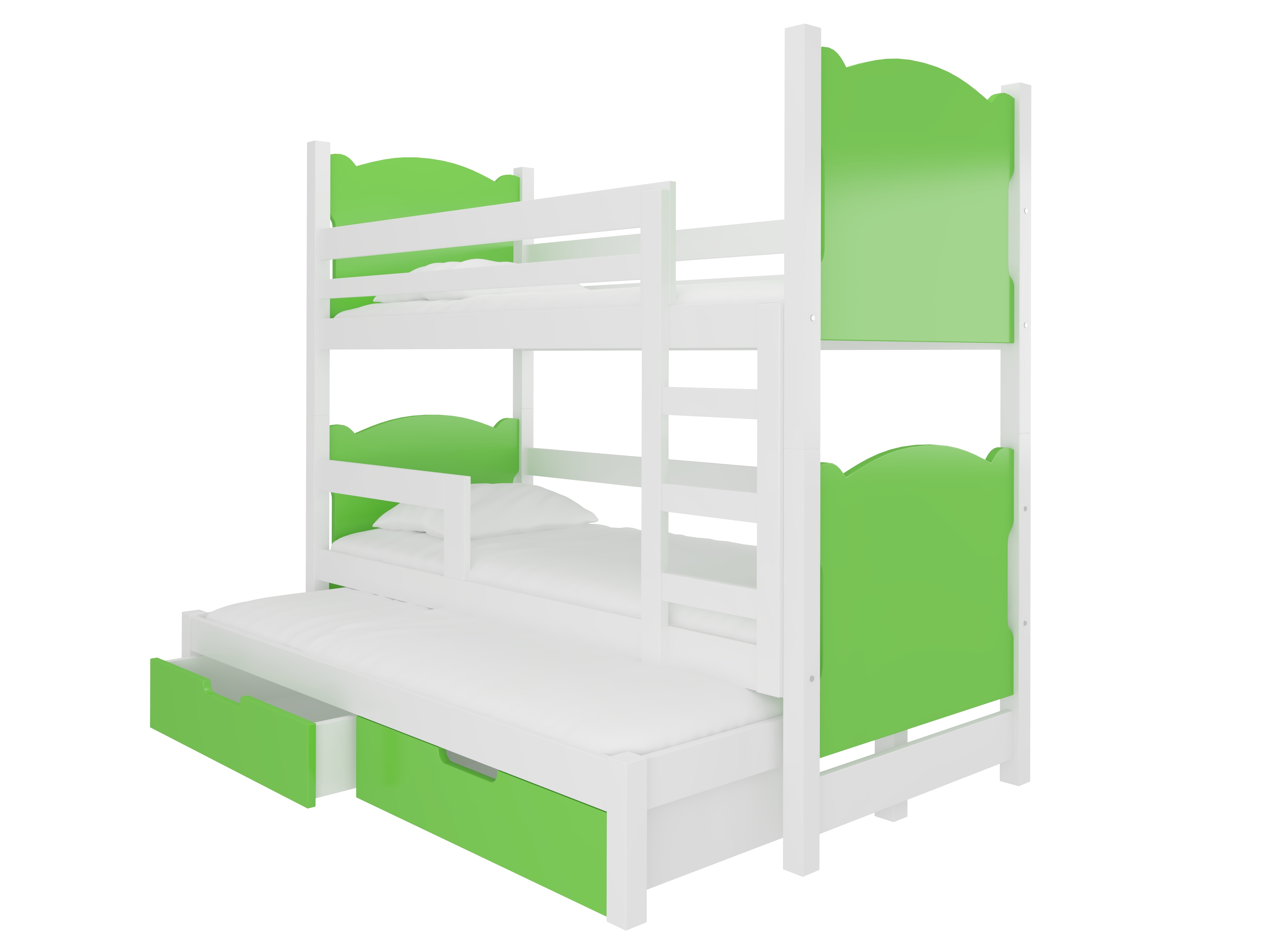 Dječji krevet na kat 180x75 cm Lukrécia (s podnicom i madracem) (bijela + zelena)