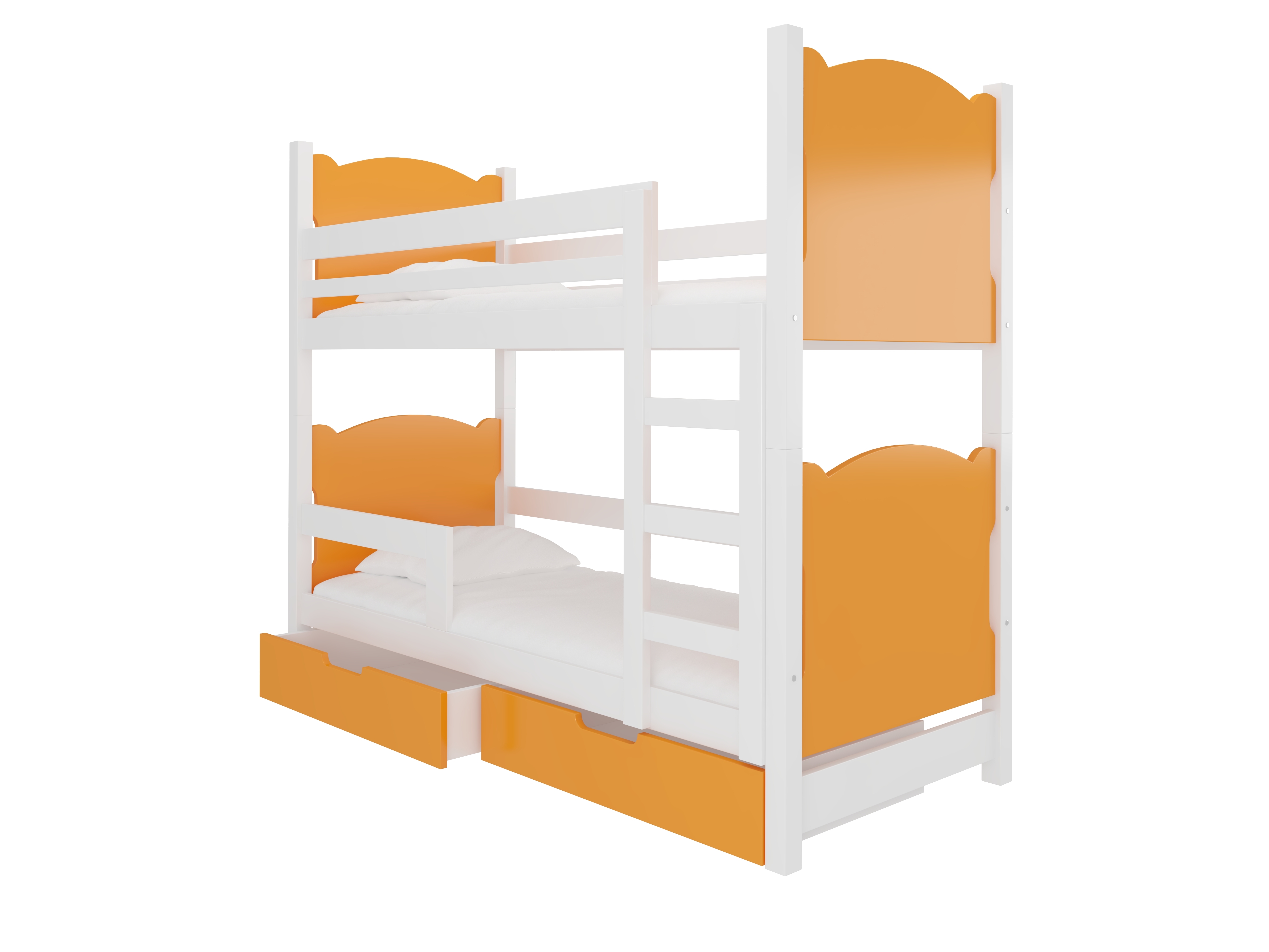 Dječji krevet na kat 180x75 cm Marryann (s podnicom i madracem) (bijela + narančasta)