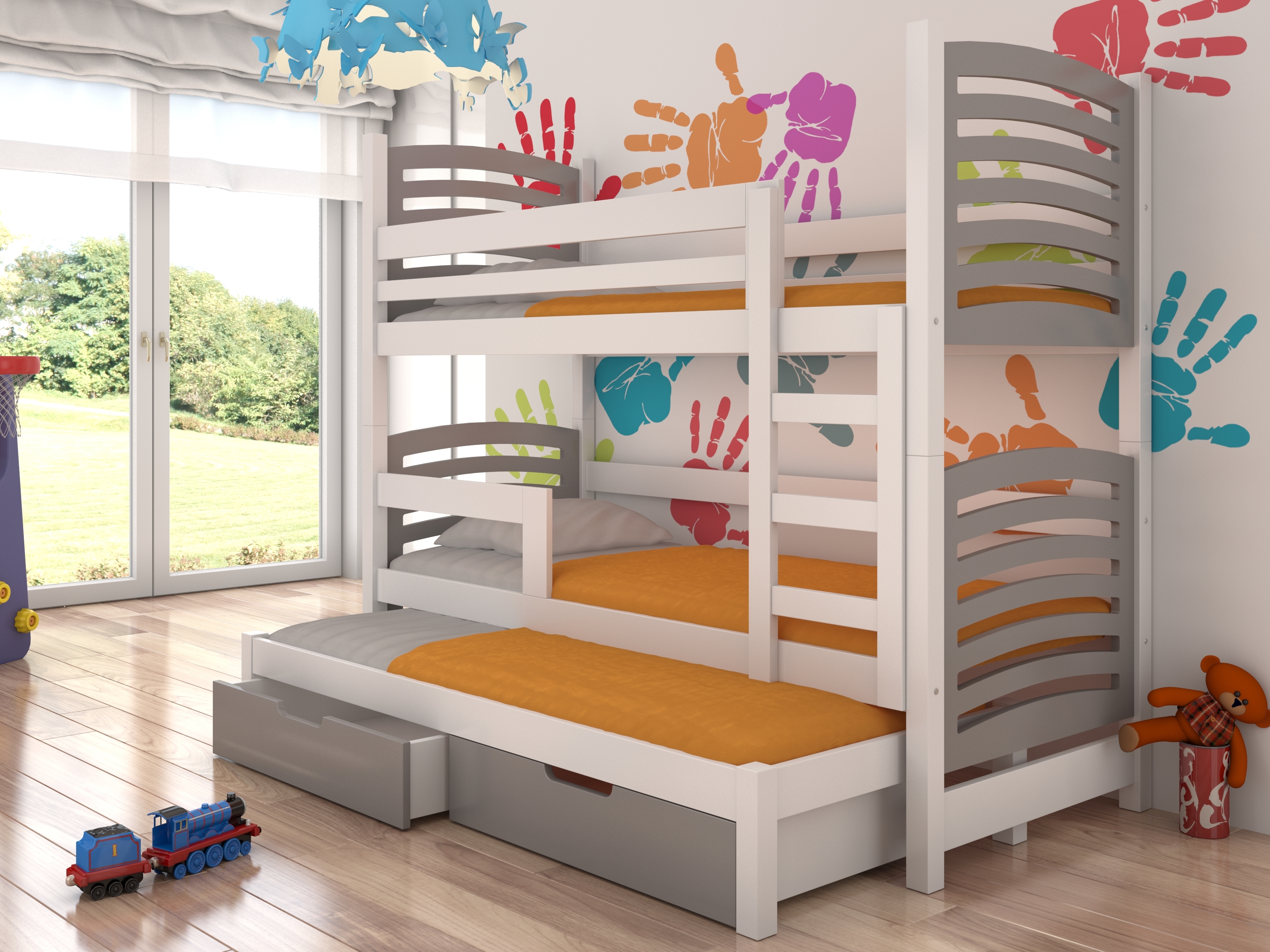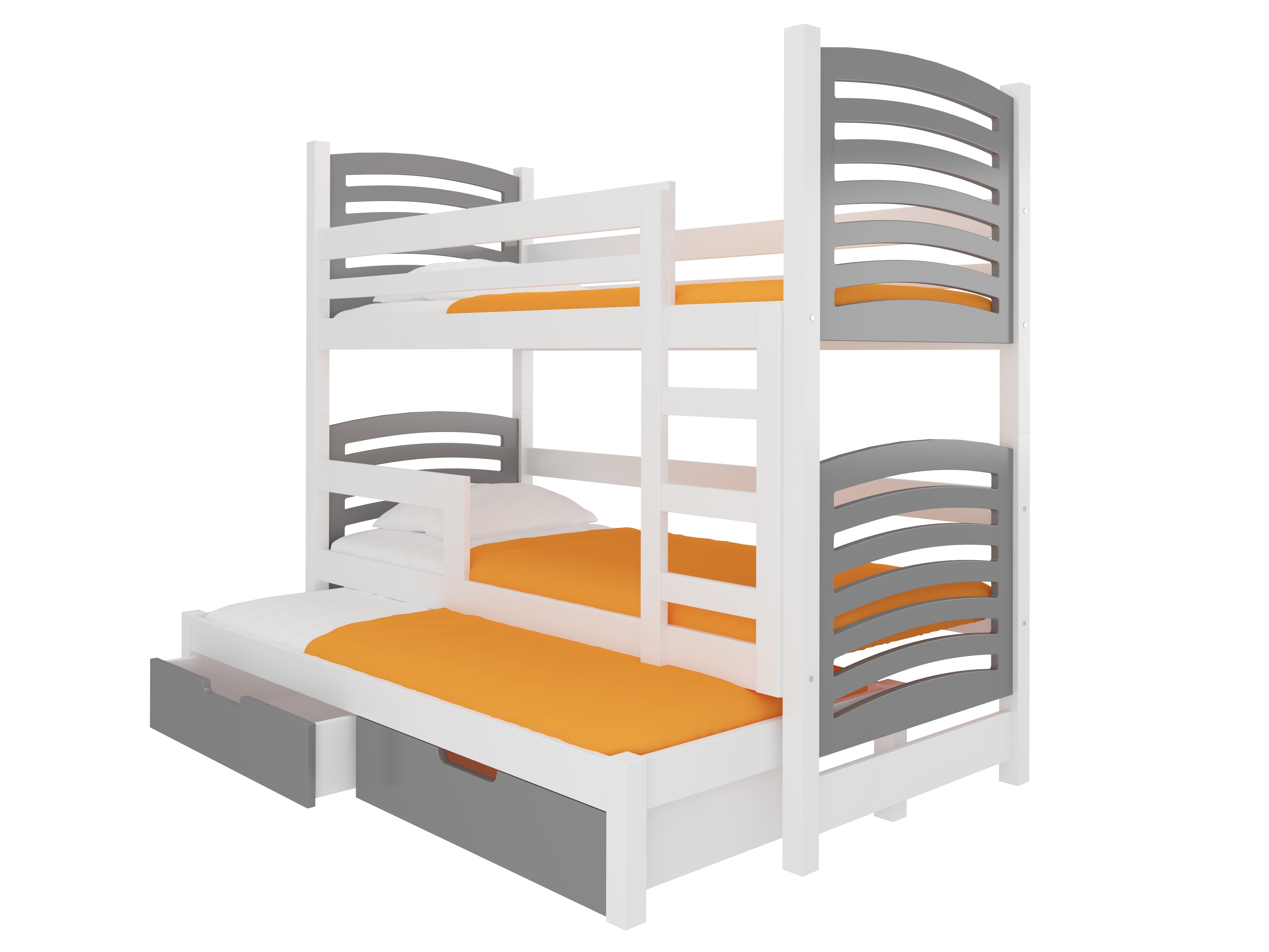Dječji krevet na kat 180x75 cm Stanislava (s podnicom i madracem) (bijela + siva)