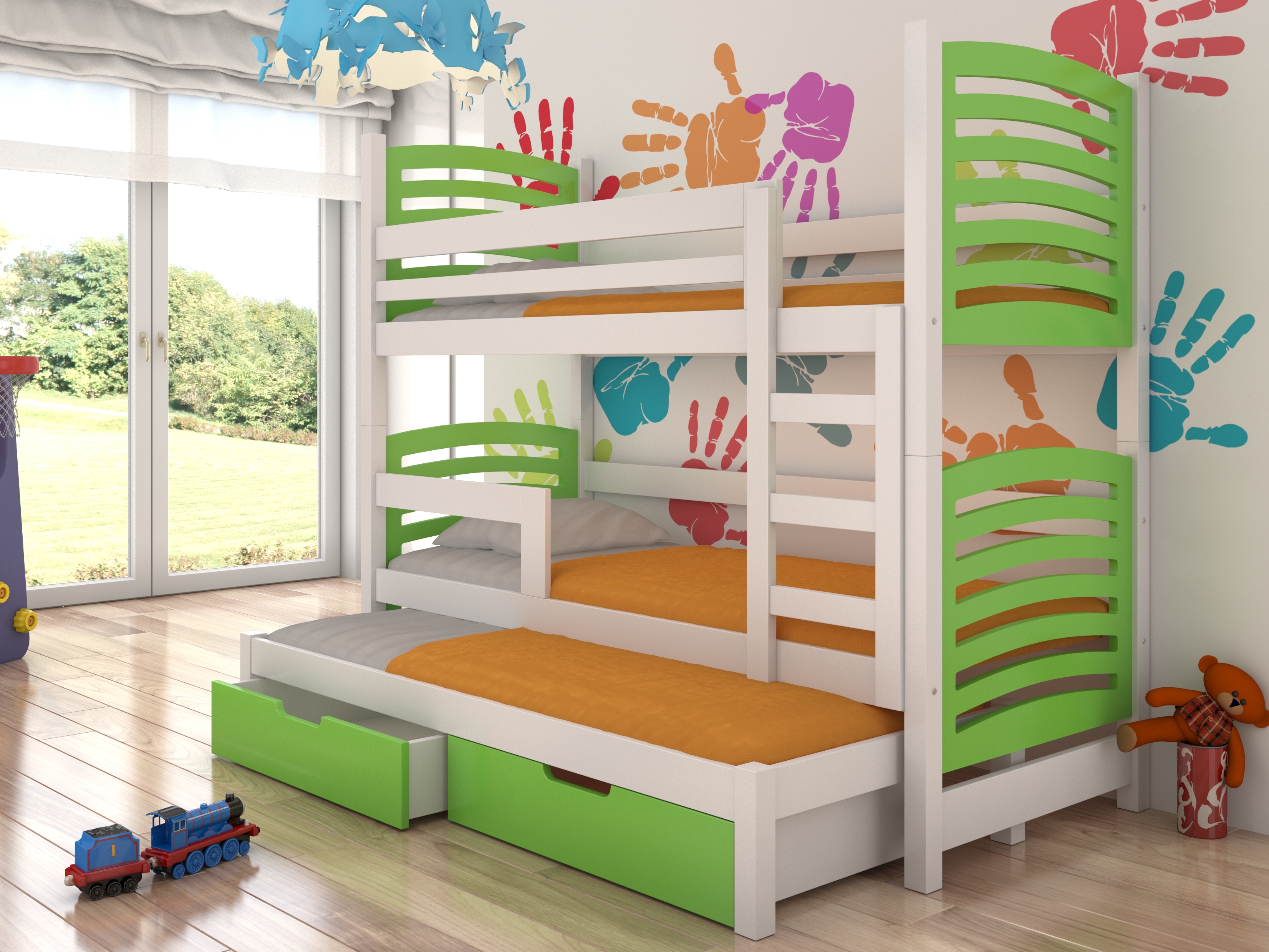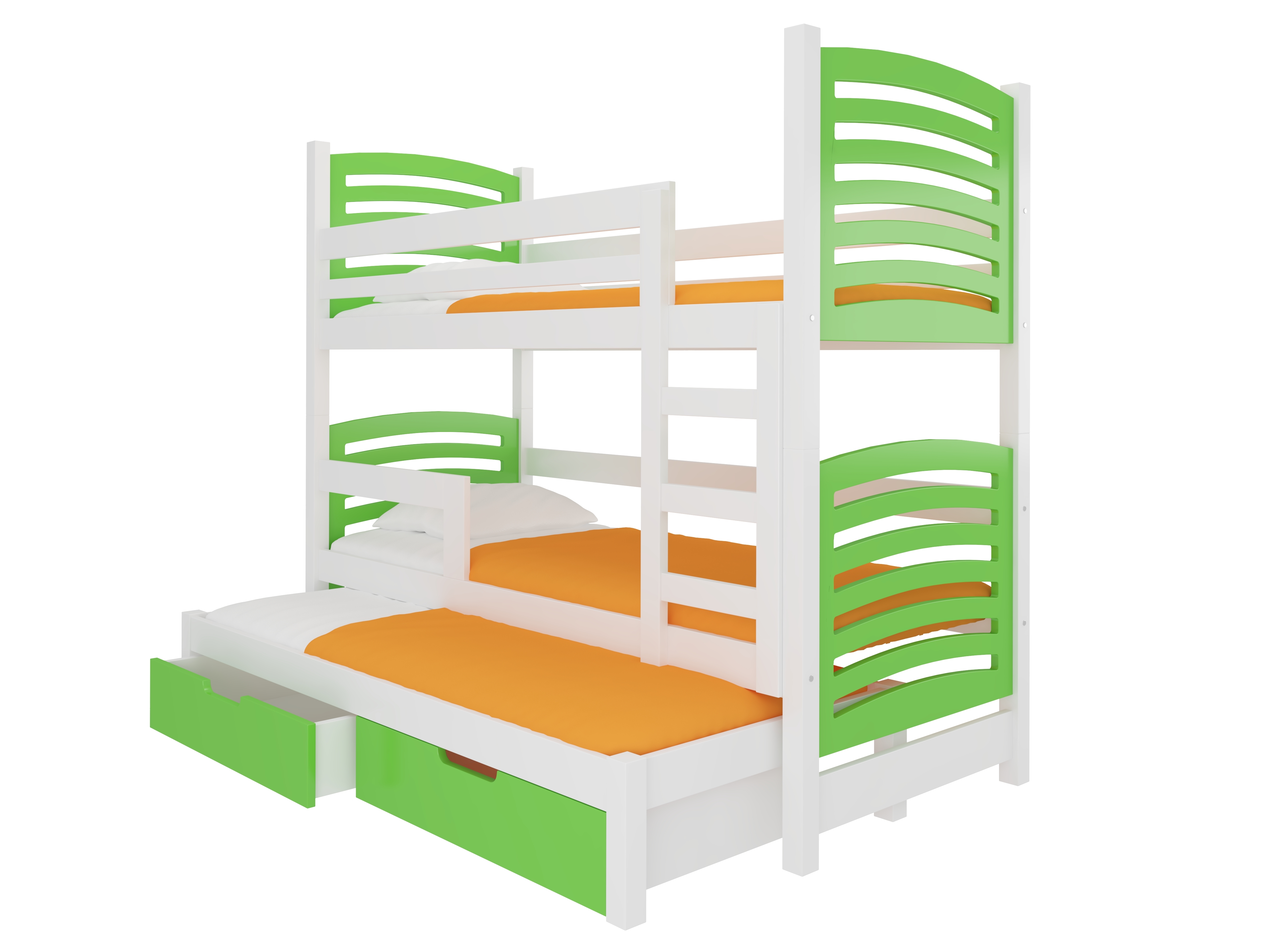 Dječji krevet na kat 180x75 cm Stanislava (s podnicom i madracem) (bijela + zelena)