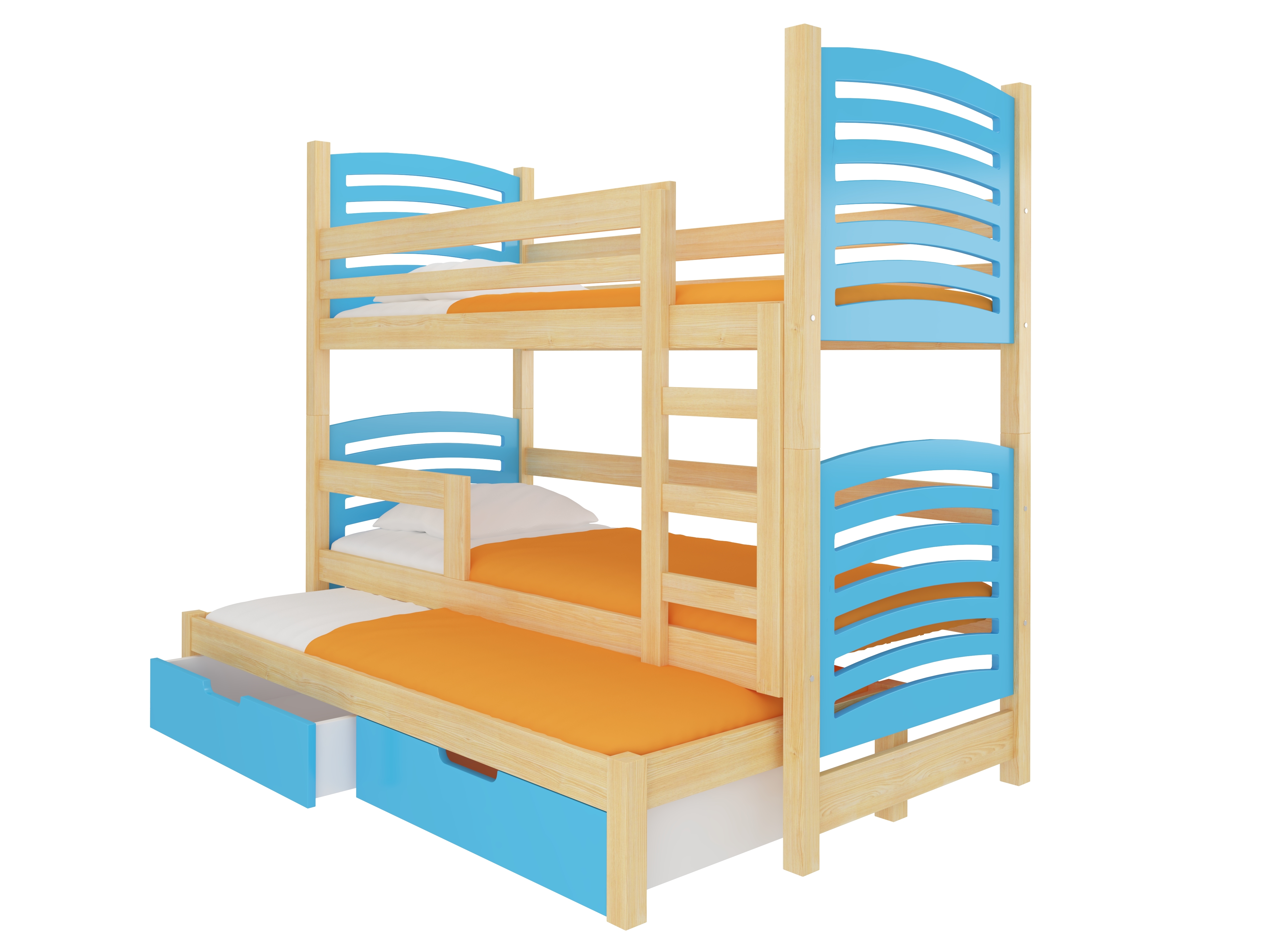 Dječji krevet na kat 180x75 cm Stanislava (s podnicom i madracem) (bor + plava)