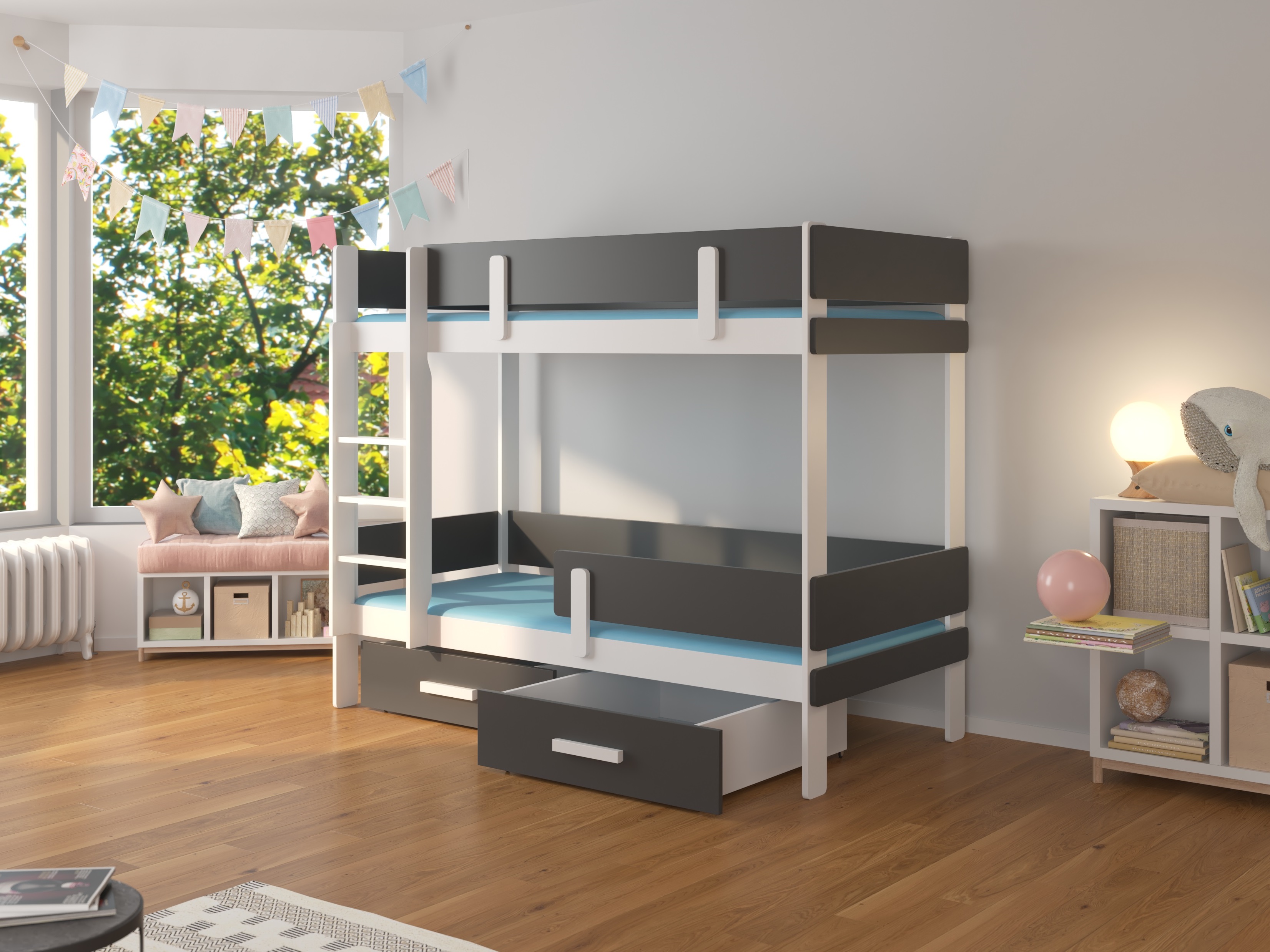 Dječji krevet na kat 180x80 cm Ellen (s podnicom) (bijela + antracit)