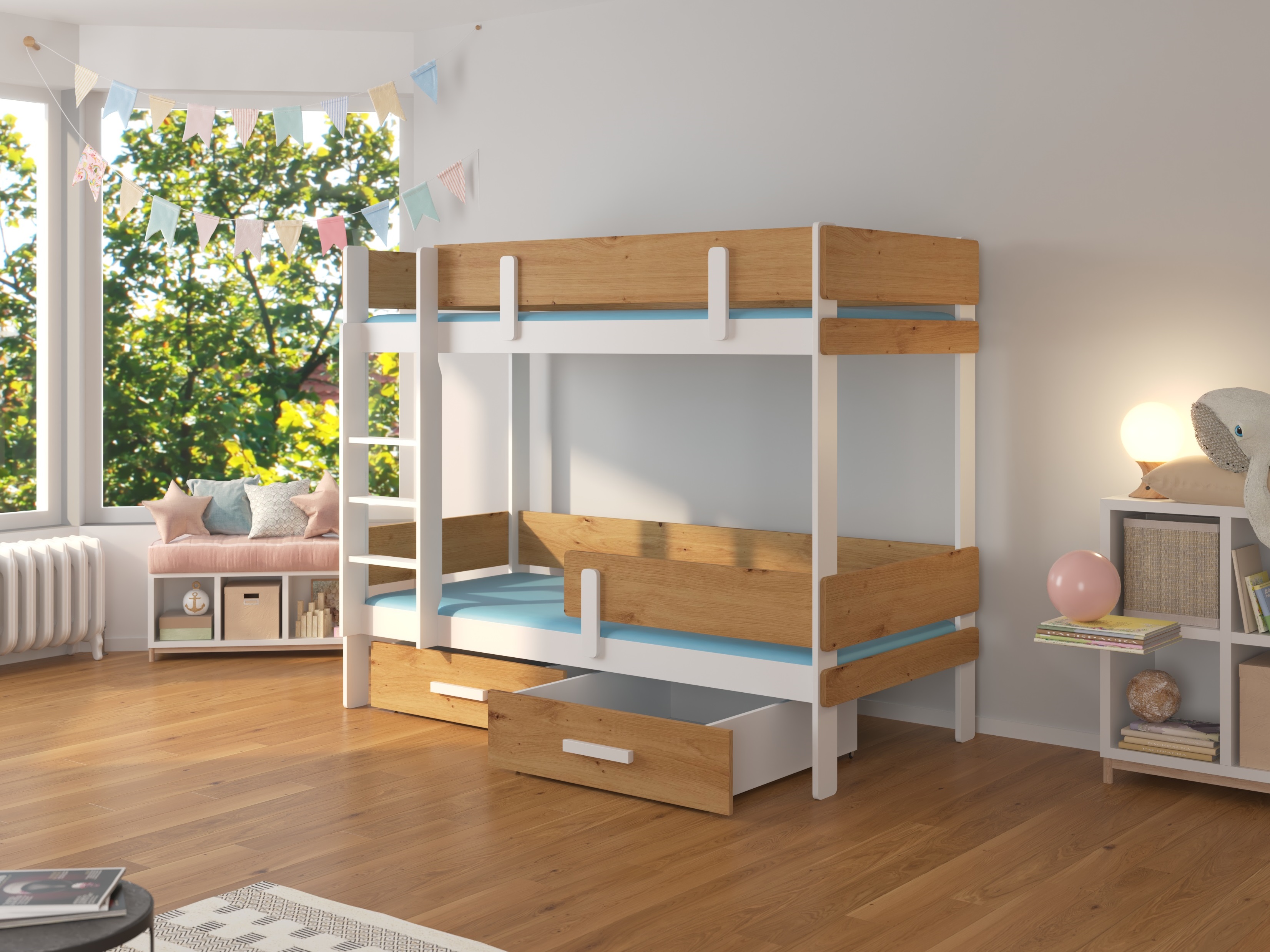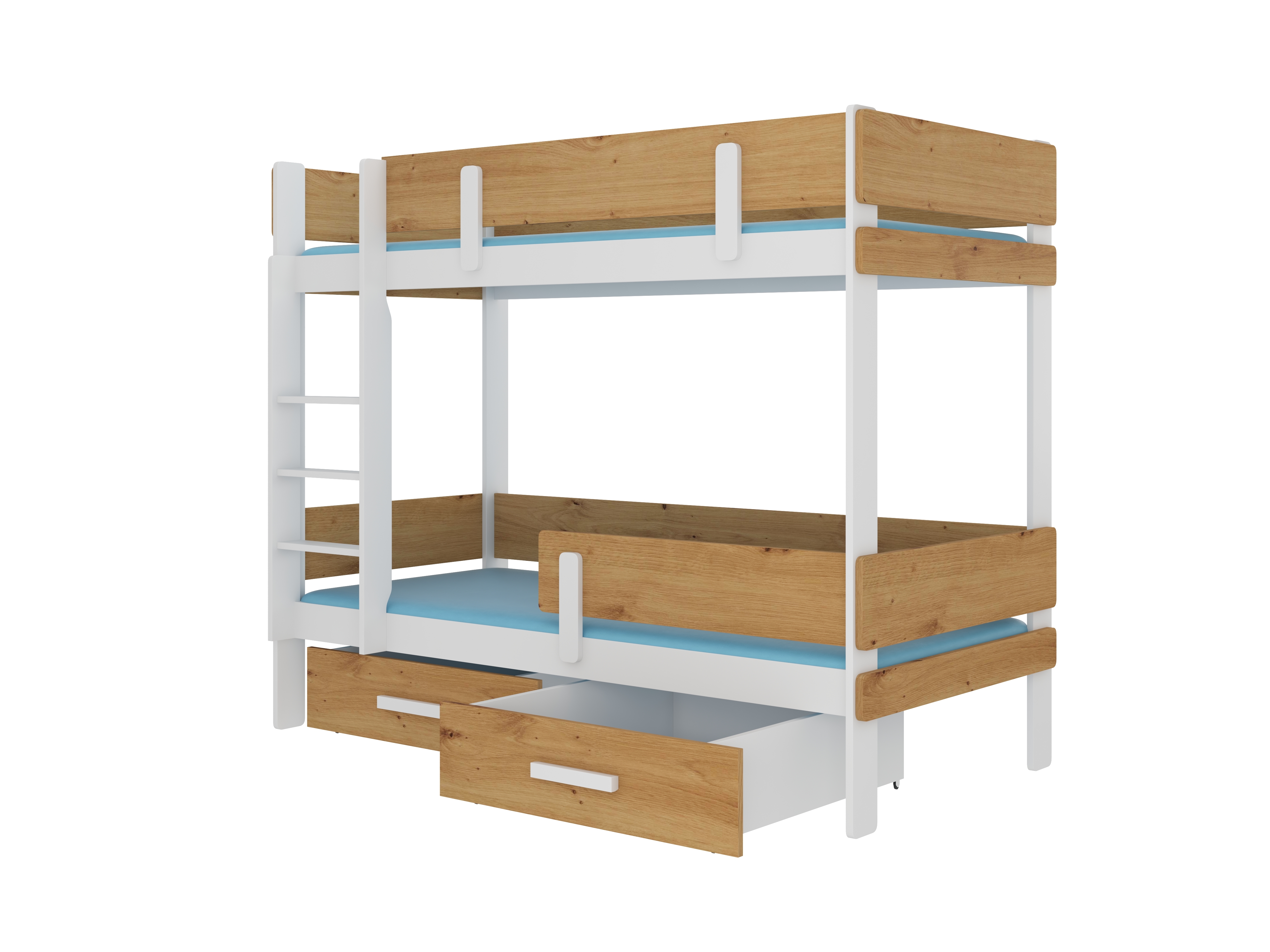 Dječji krevet na kat 180x80 cm Ellen (s podnicom) (bijela + hrast artisan)